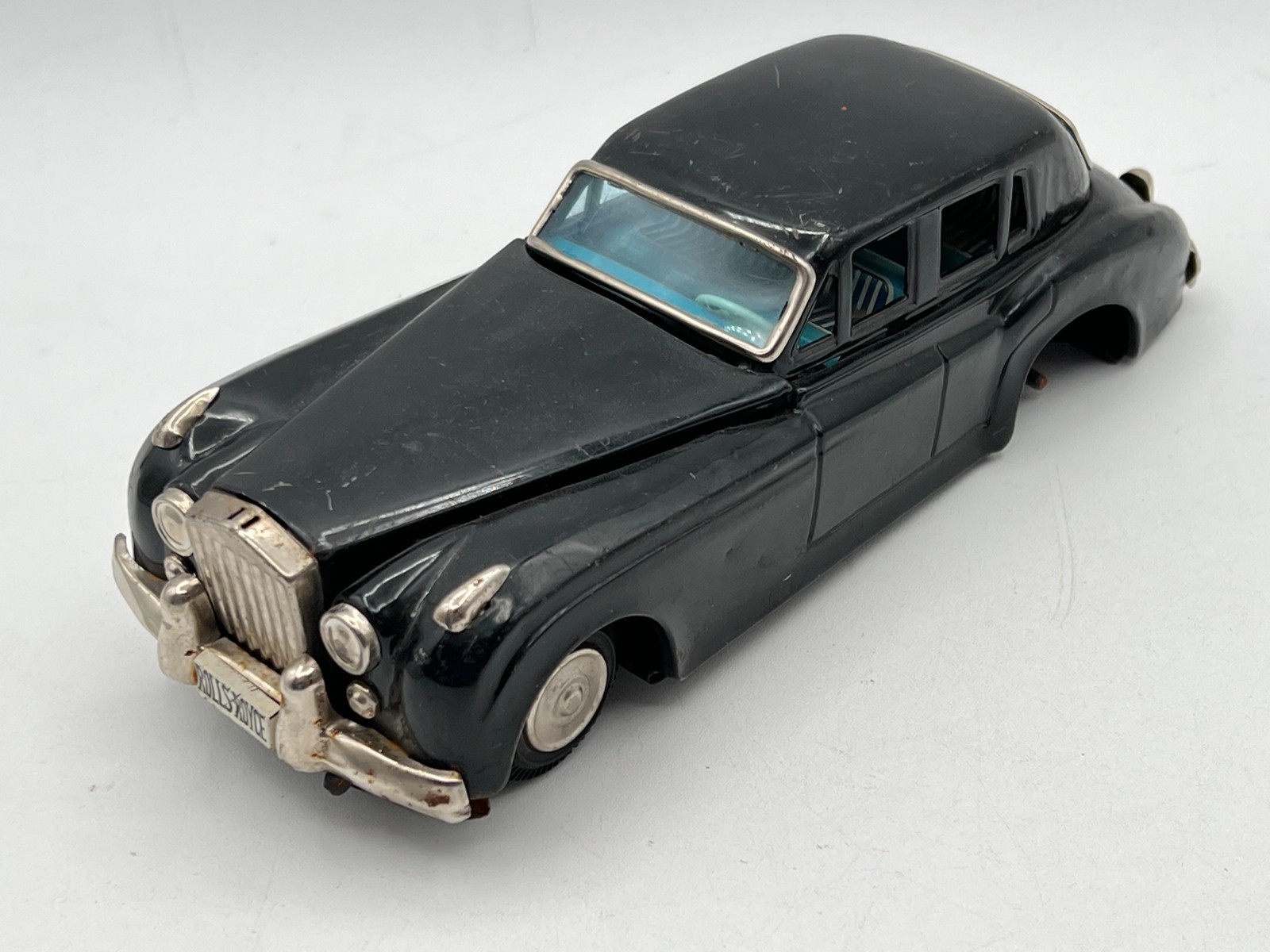Vintage 1960s Yonezawa Tin Friction Black Rolls Royce Japan - 8 1/2 Long READ