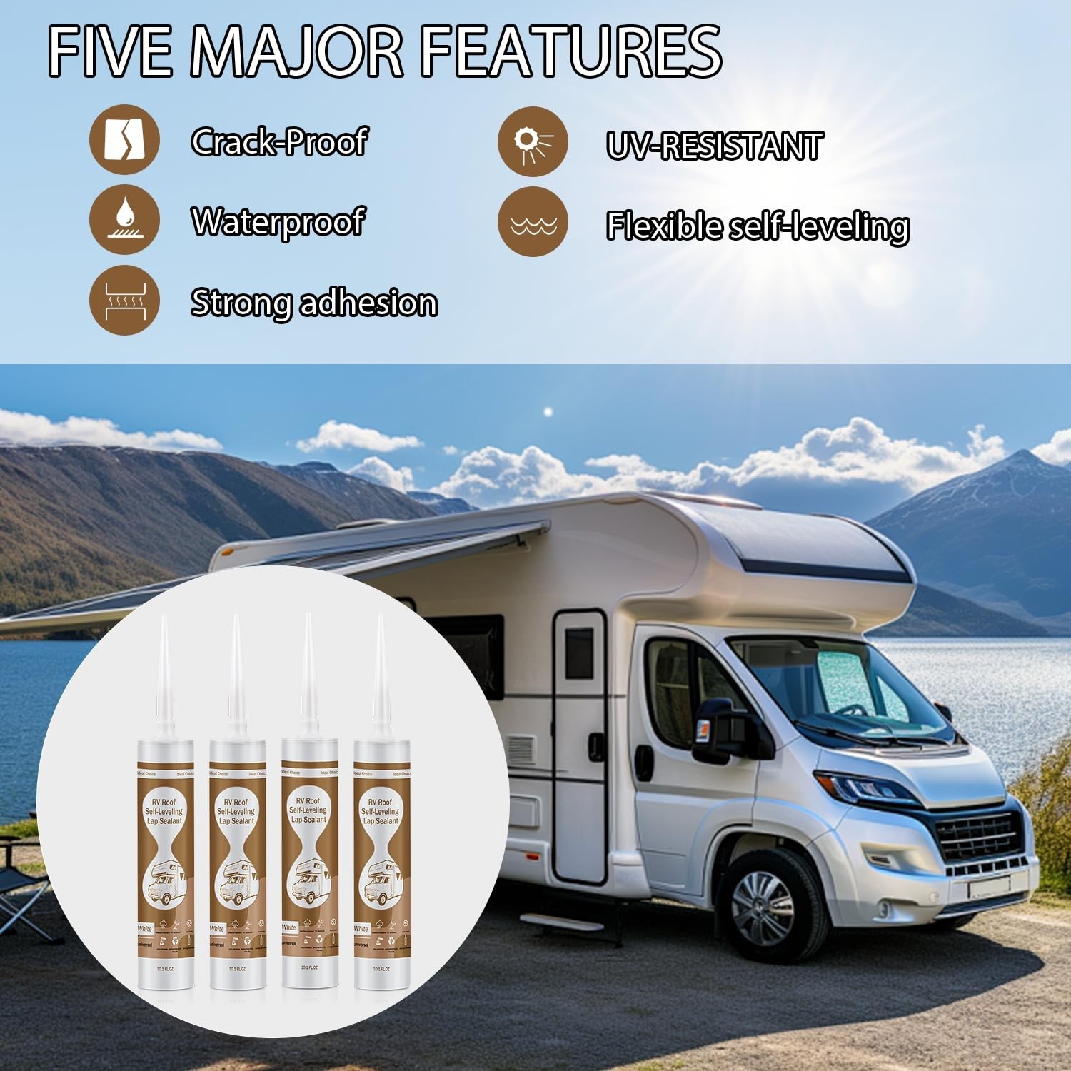 Self Leveling RV Roof Sealant White, 4 Pack Camper Roof Sealant, Lap Sealants...