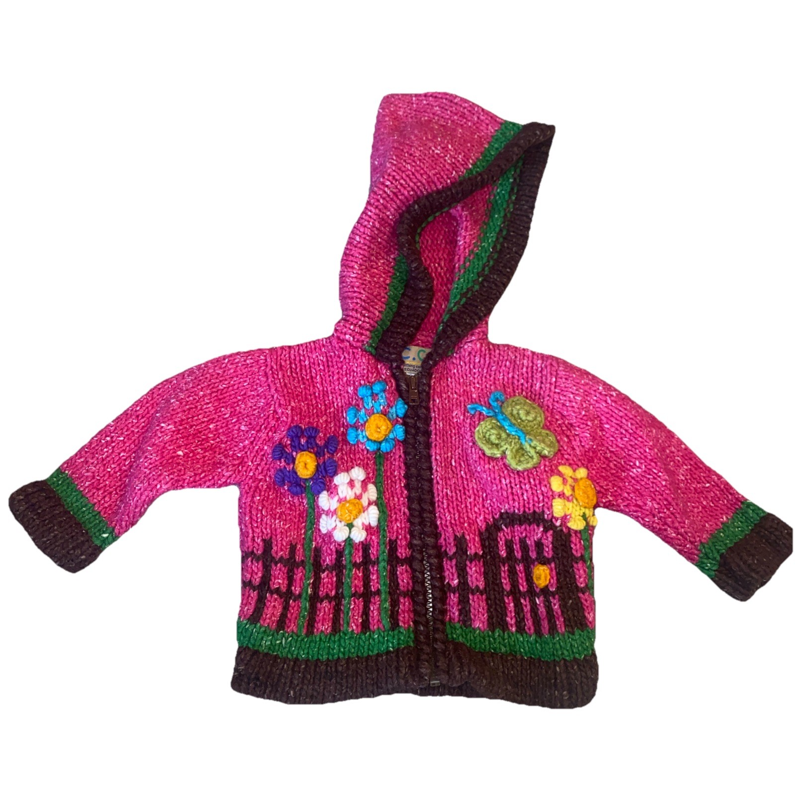 Ecuadorian Clothing Company Hand Made Wool Blend Hooded Full Zip Jacket Pink