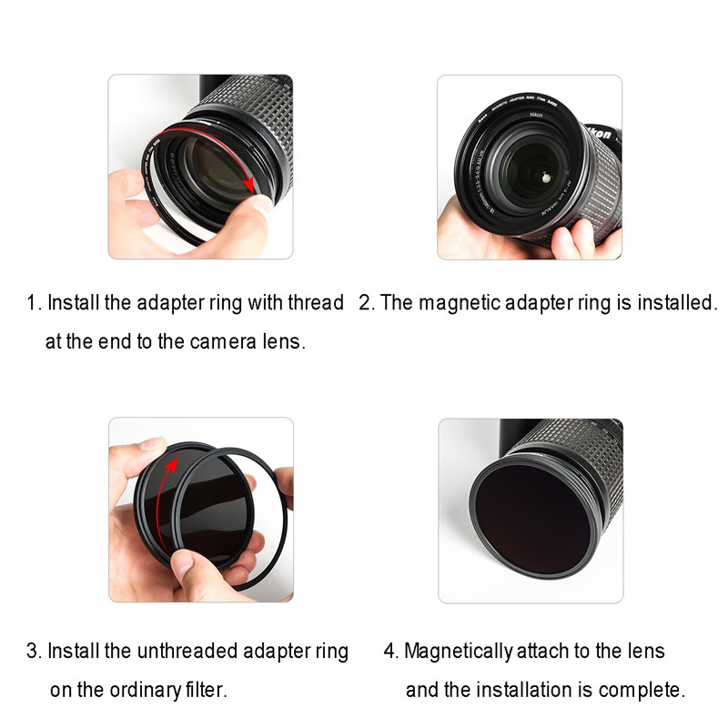 Kase Magnetic Adapter Ring kit Thread Filter to Magnetic Filter 67 72 77 82mm