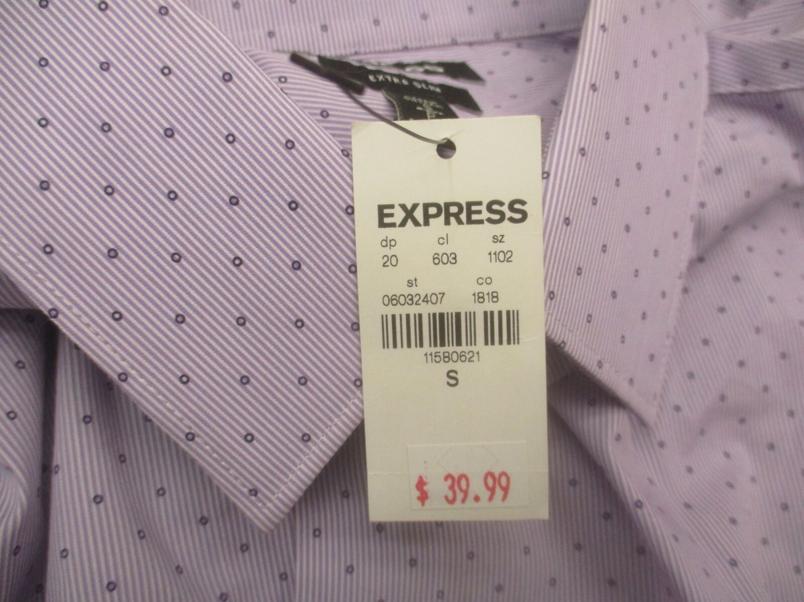 NWT EXPRESS Size S 14-14.5 Mens Cotton Long Sleeve Slim Button Up Shirt 801