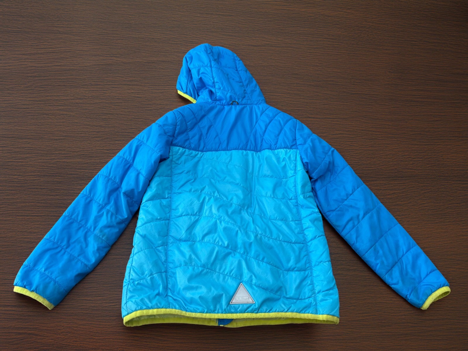 как выглядит L.L. Bean PrimaLoft Hooded Jacket Blues Lime Green Girls M 10-12 EUC фото