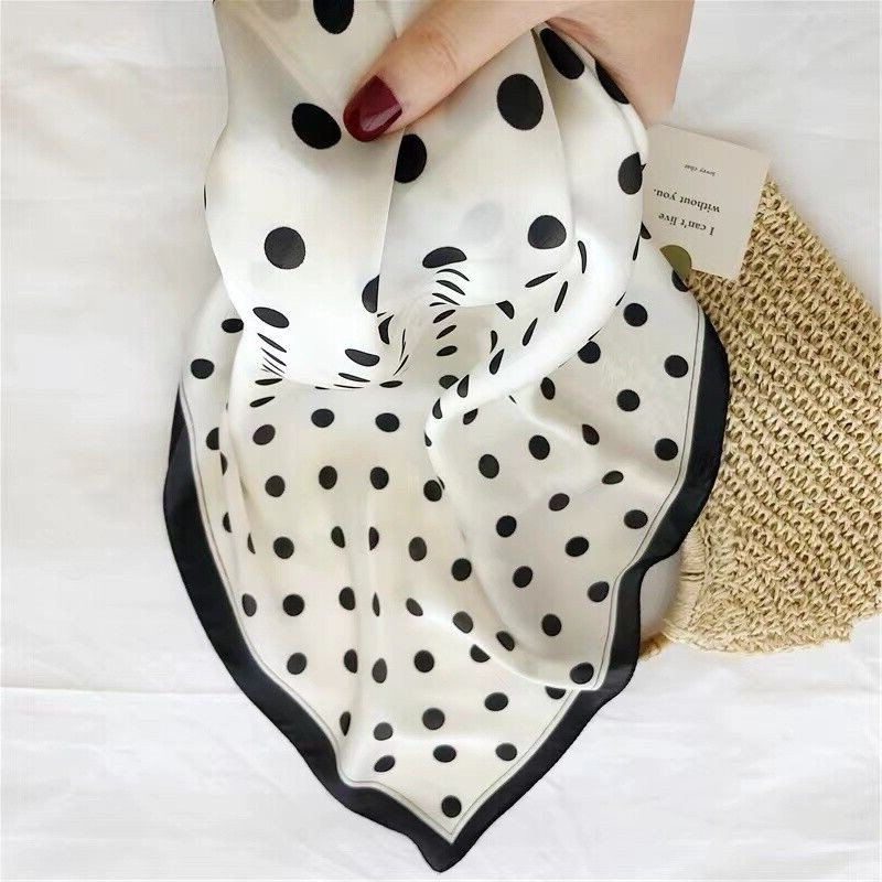 21X21White Dots Print Pure Mulberry Satin Silk 12momme Scarf 53x53cm 4128