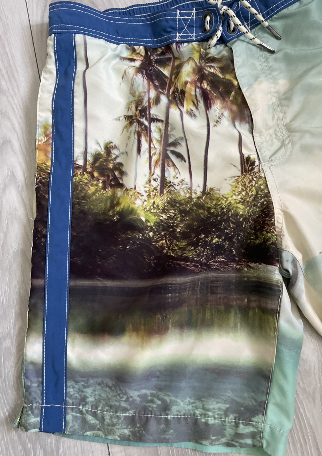 как выглядит Tommy Bahama Relax Mens Stretch Board Shorts Blue Tropical Tie Waist Sz L фото