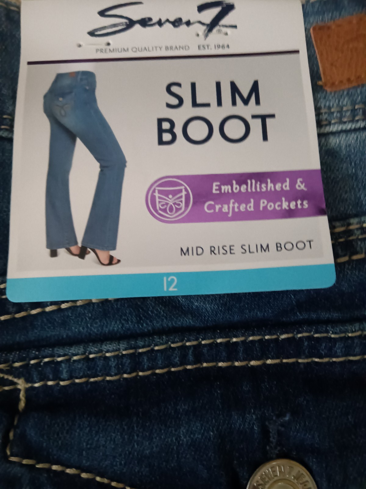 NEW Size 12 Womens Seven7 Jeans Mid Rise Slim Boot Distressed Crafted Pockets
