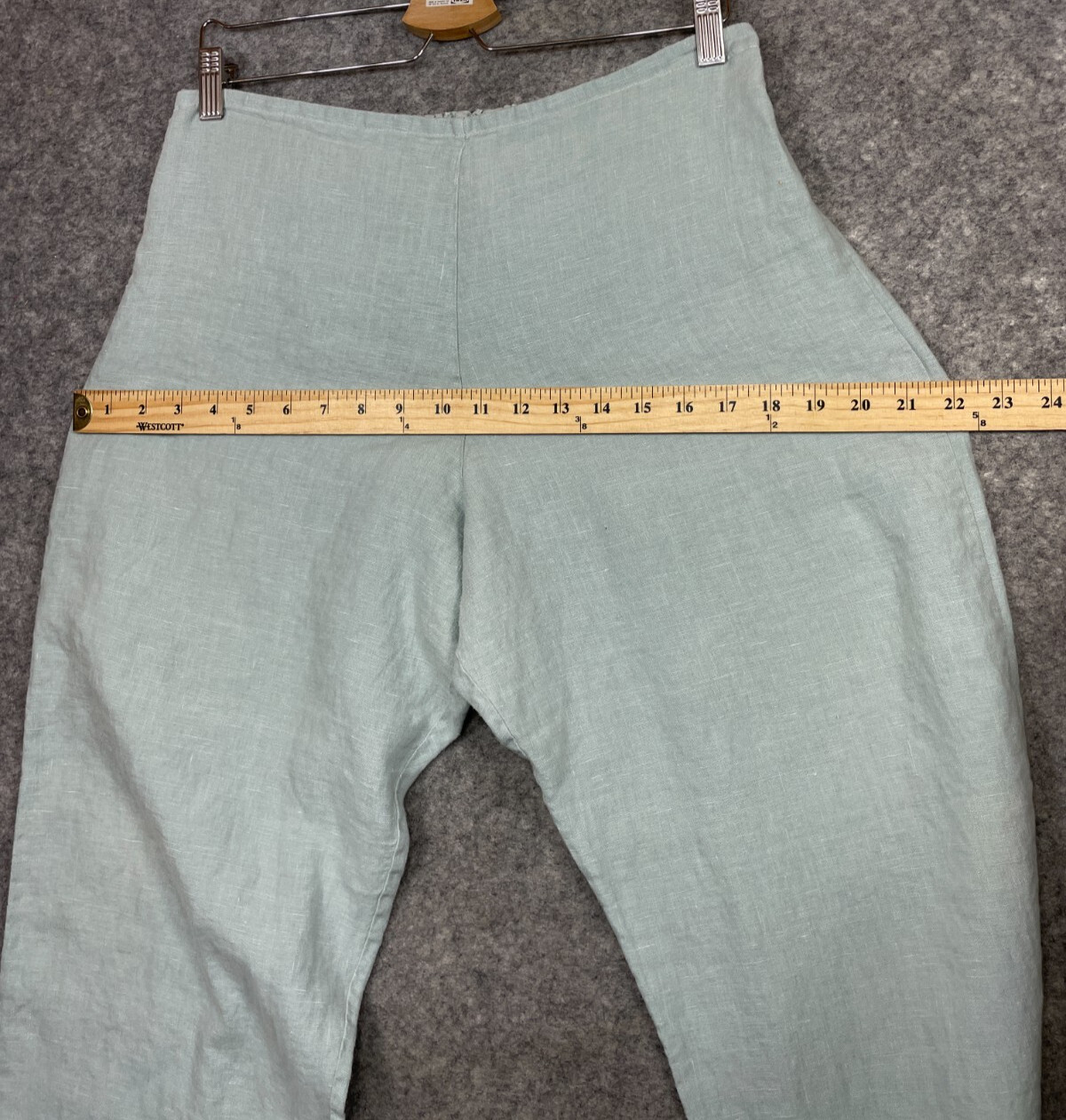 Bryn Walker Linen Pants Womens M Green Blue Wide Leg Lagenlook Relaxed Pull On