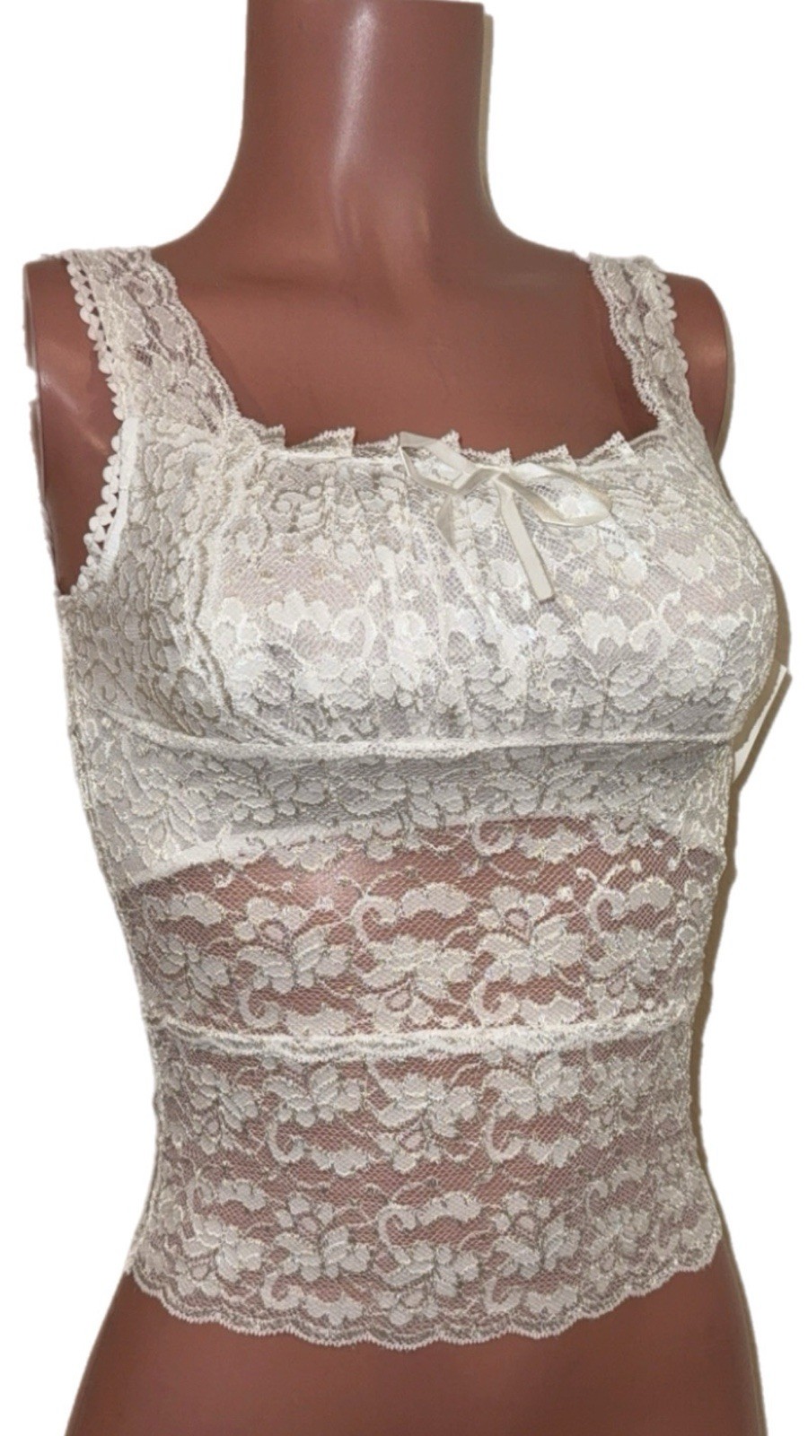 Y2K White M Floral Lace Lined Bust Gurlie Cami Top Sweet Coquette Vintage 2k NWT