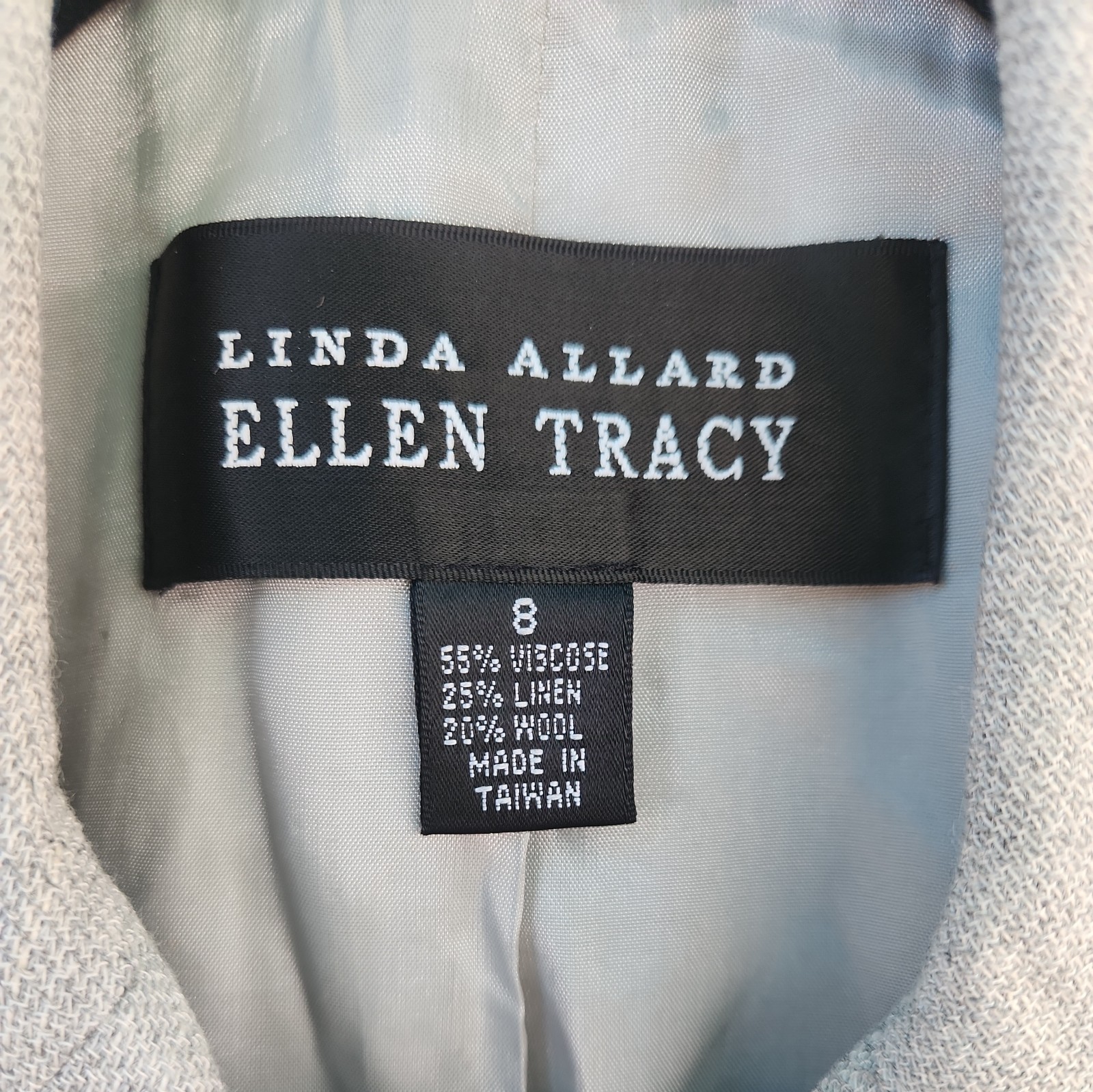 как выглядит Linda Allard Ellen Tracy 8 Lite Gray Double Breasted Viscose Wool Linen Blazer фото