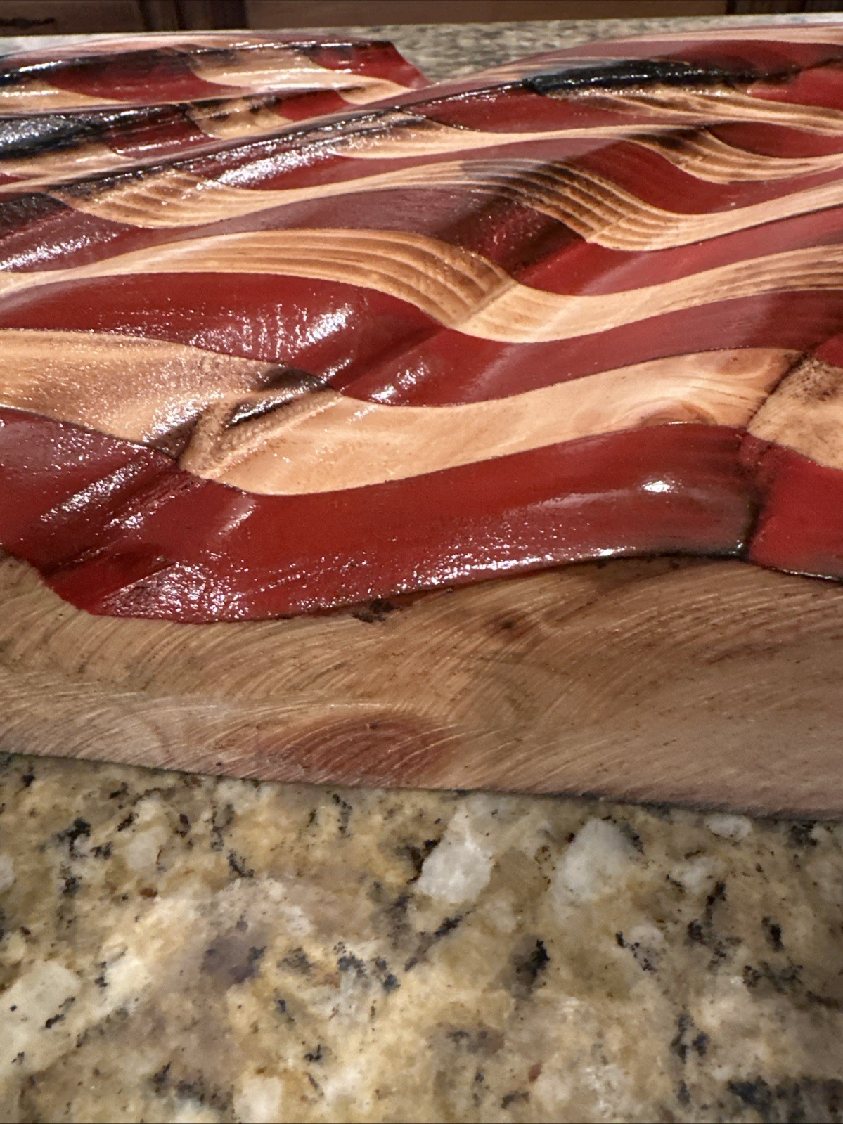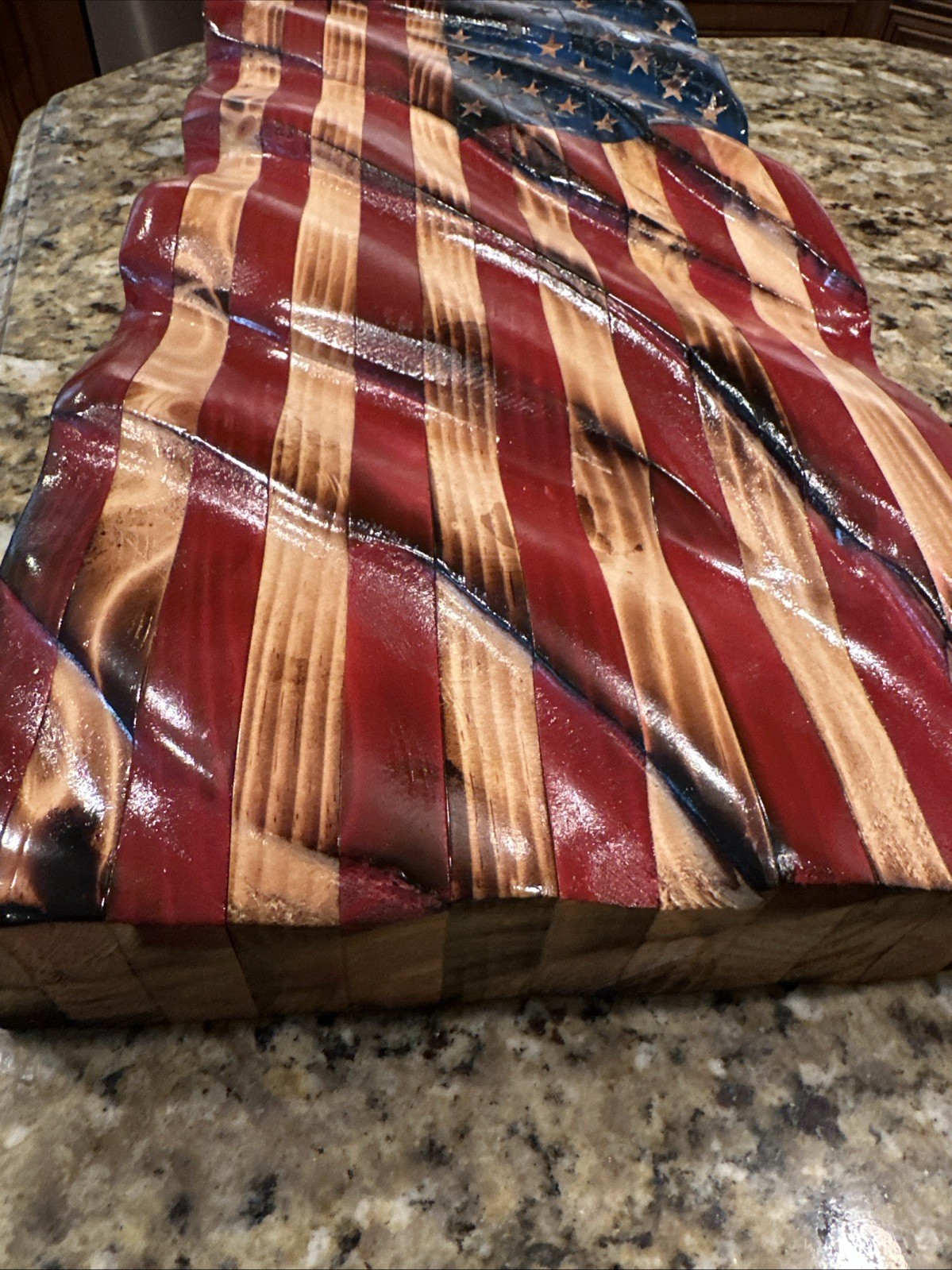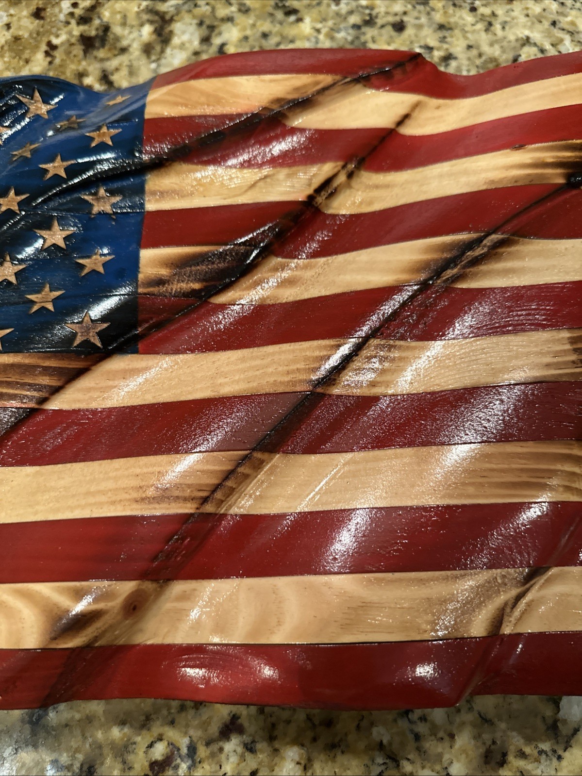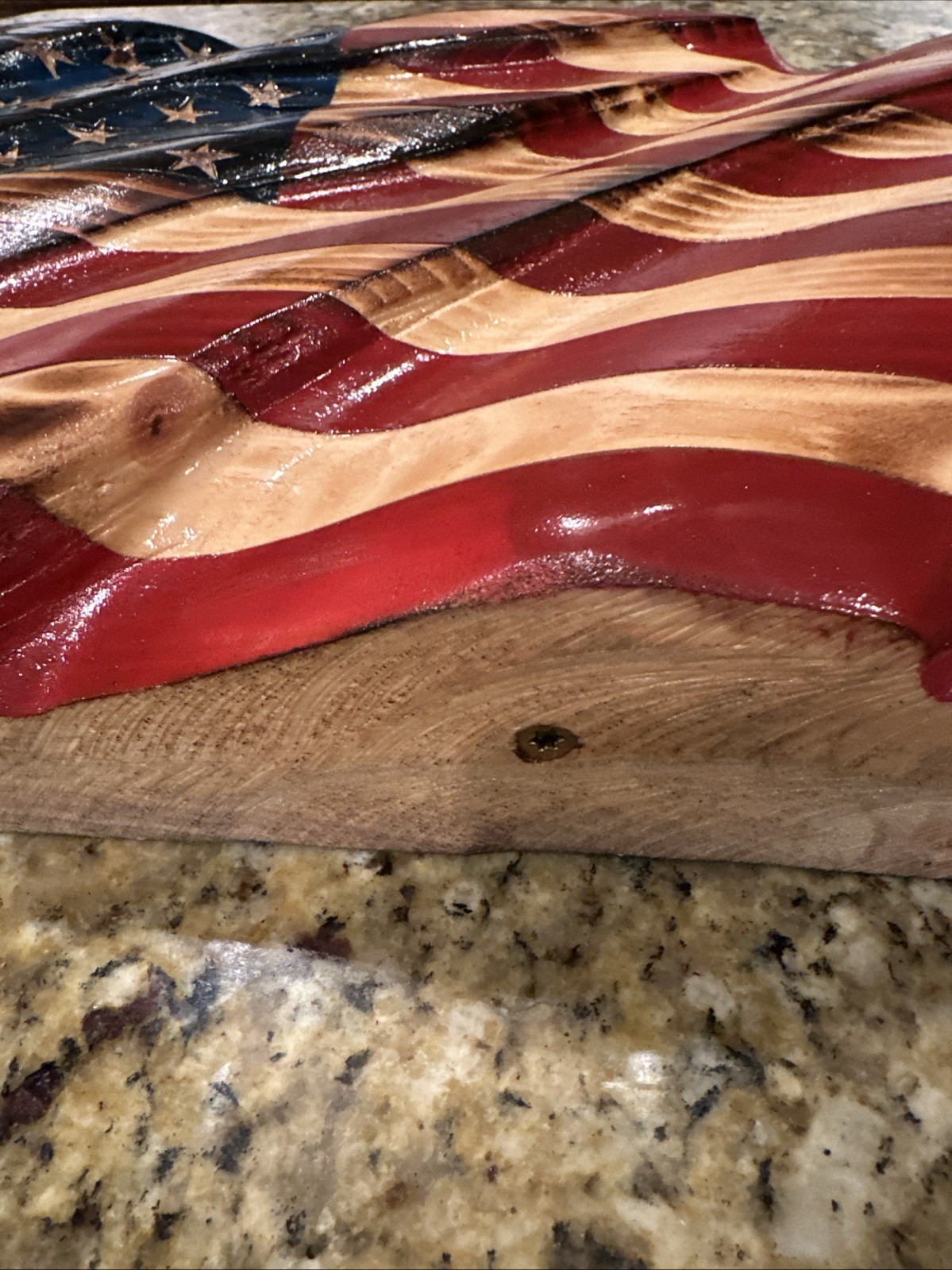 Hand Made USA Hand Crafted Solid Pine Wood Rustic American Flag Decor 24x13
