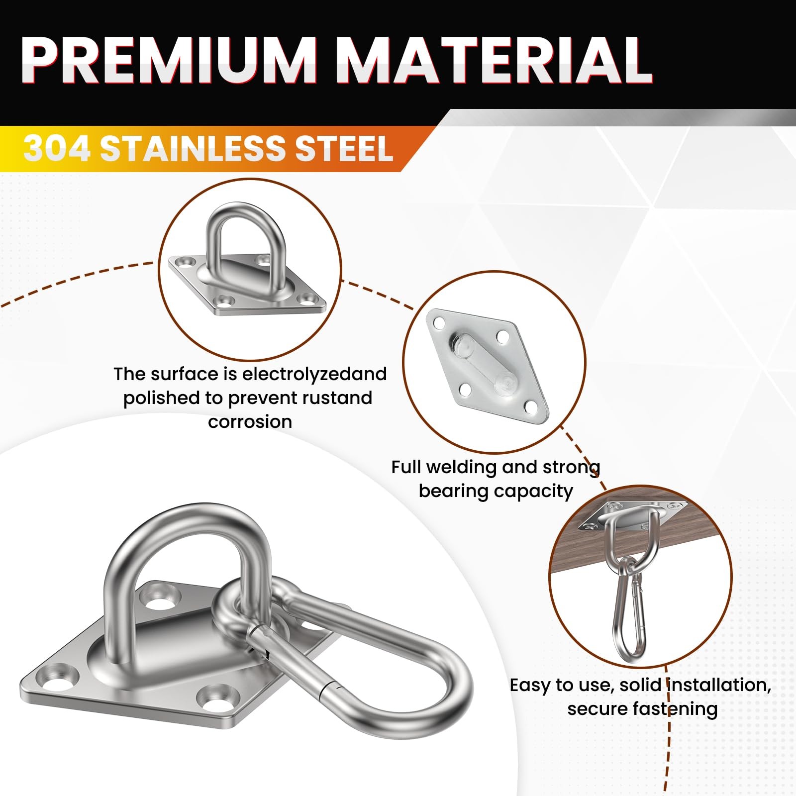 2 Sets Stainless Steel Swivel Carabiner Hammock Hanging Hooks for Suspension