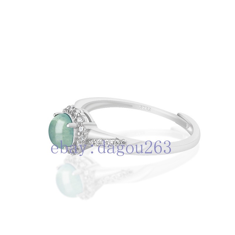 Certified natural A-grade jadeite blue water Circular 925 silver inlaid ring