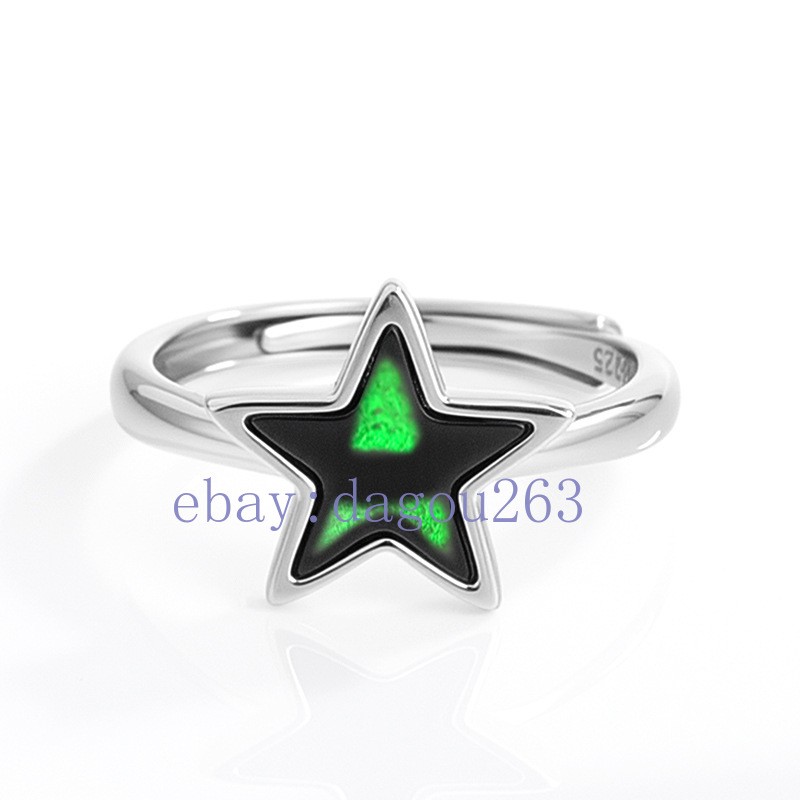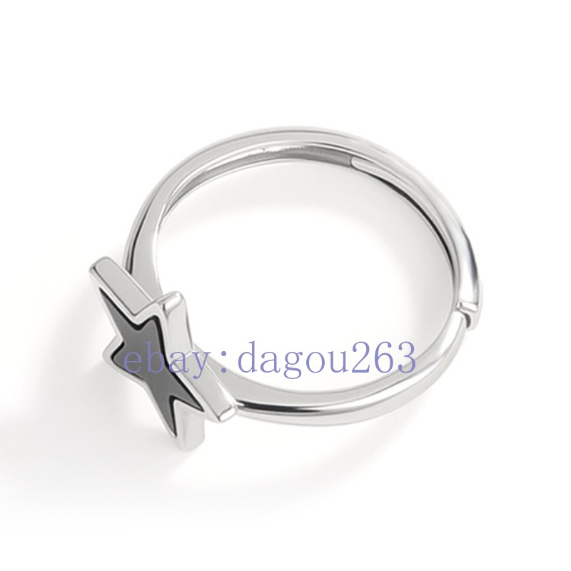 Certified natural A-grade black jadeite Pentagram 925 Silver Inlaid Ring