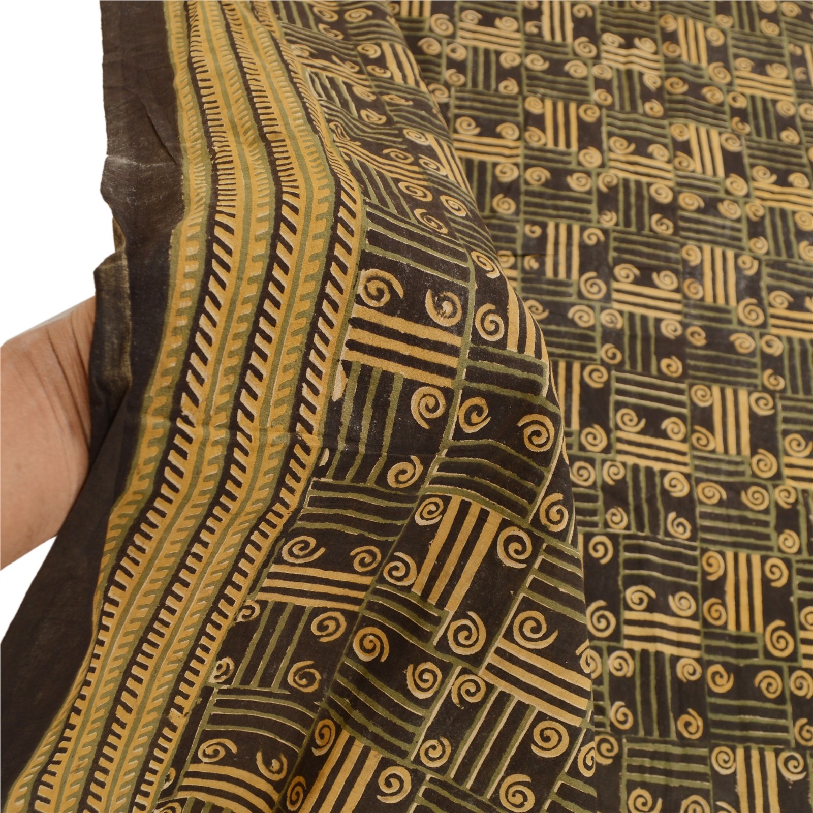 Sanskriti Vintage Dupatta Long Stole Cotton Black Block Geometrid Print Scarves