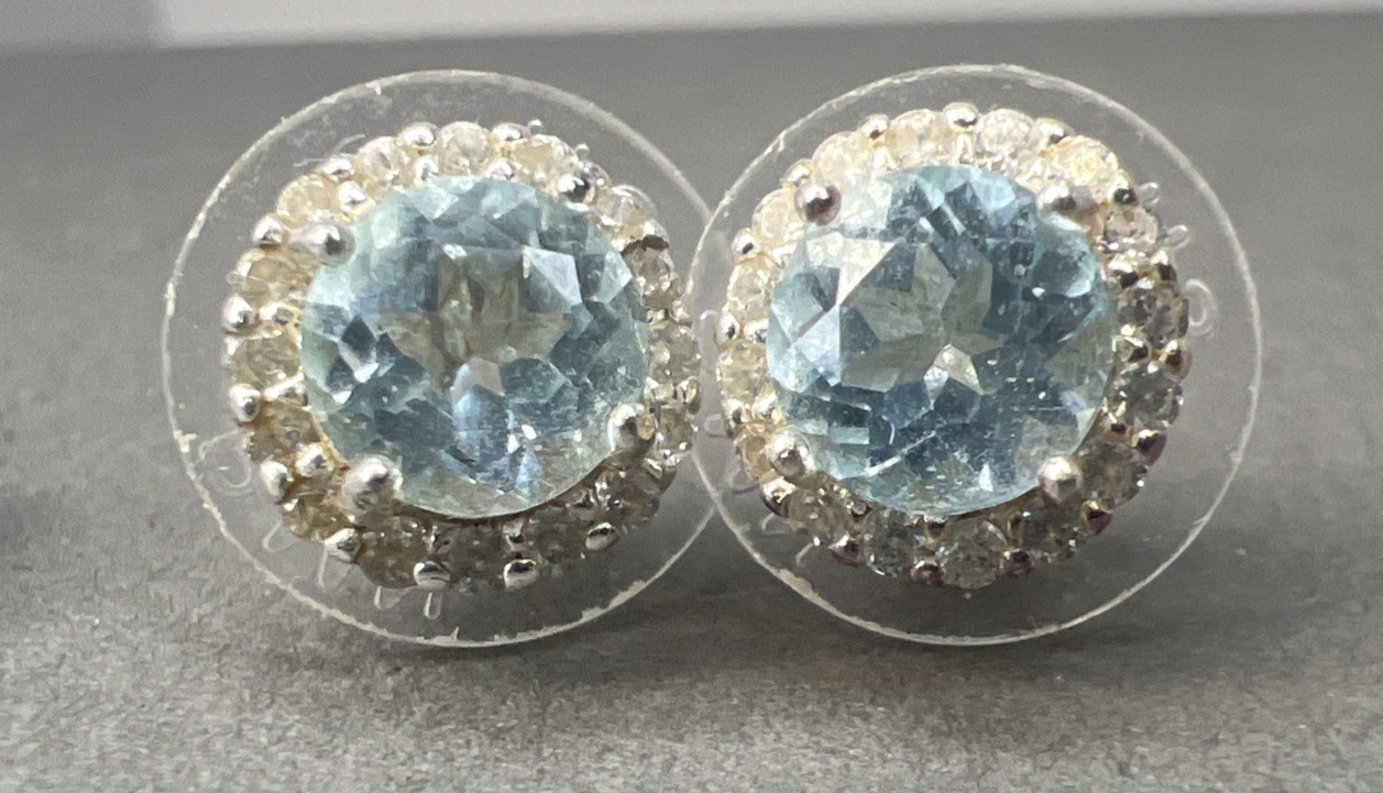 SET OF 2 Blue Topaz 925 Sterling Silver Petite Stud Earring Sets December Birth