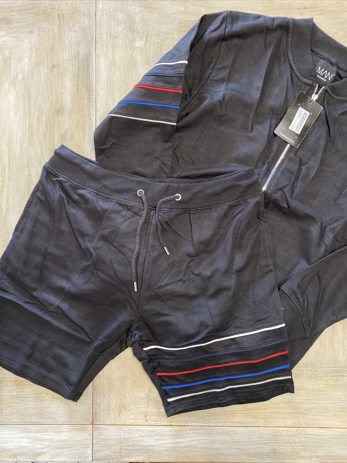 mens track top and shorts set size Small, black RRP 45 bomber tracksuit Boohoo