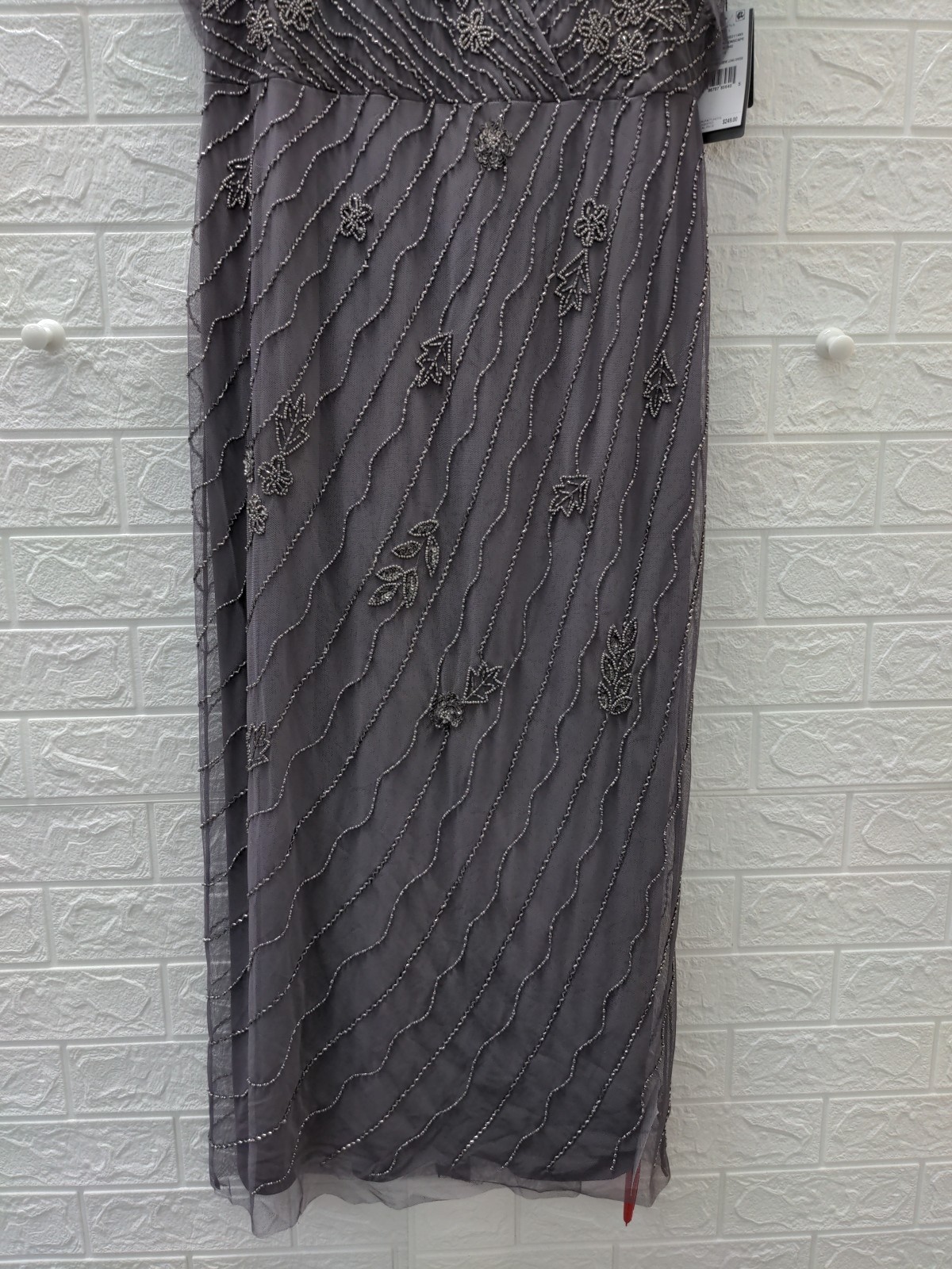 как выглядит New Adrianna Papell Beaded Ankle Length Dress With Sheer Flutter Sleeves In... фото
