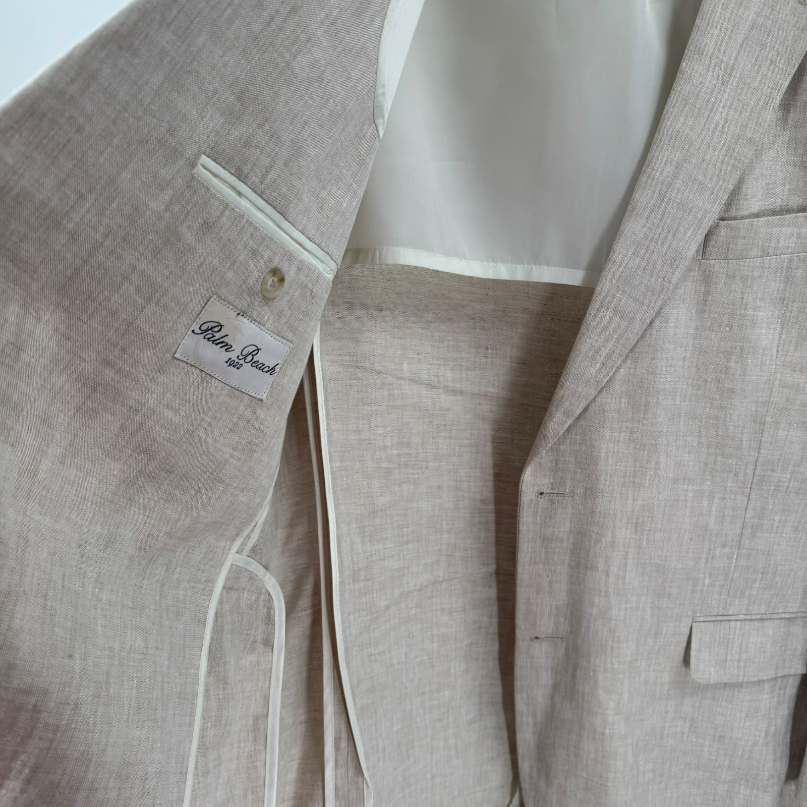 Palm Beach 1922 Mens 100 Linen Cream Blazer Size 44L Classic Two-Button Design