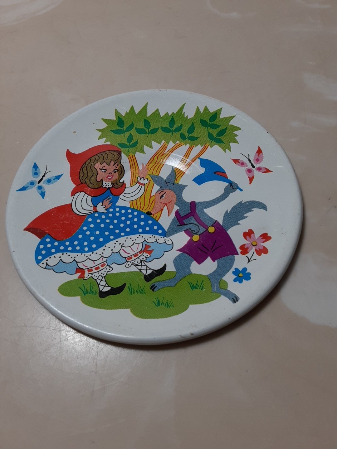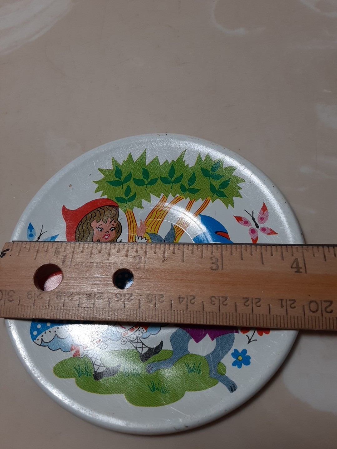 как выглядит Mixed lot 17 Vtg Tin Litho Play Dishes Birthday Alice Wonderland Riding hood фото