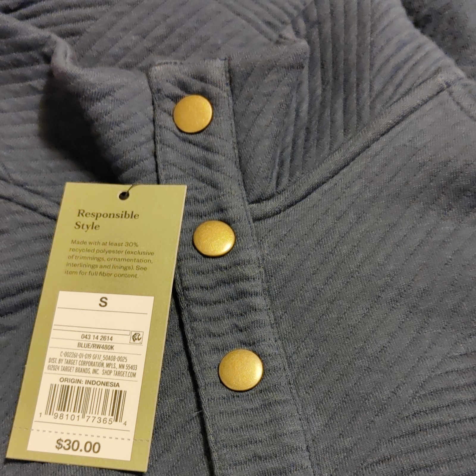 Goodfellow Men Soft Quilted 1/4 Snap Stand Collar Pullover Sweatshirt Blue S NWT
