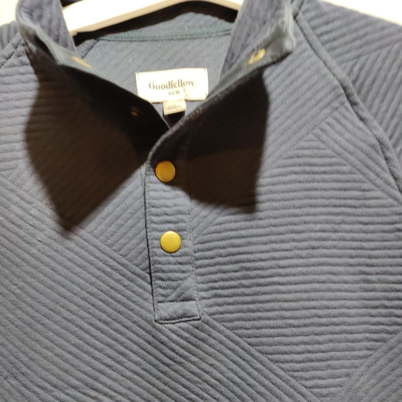 как выглядит Goodfellow Men Soft Quilted 1/4 Snap Stand Collar Pullover Sweatshirt Blue S NWT фото