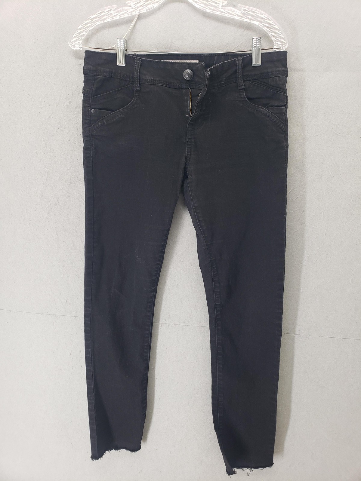 Cache Cache Jeans Women 8 Black Skinny Raw Hem Stretch Ankle Pants Denim