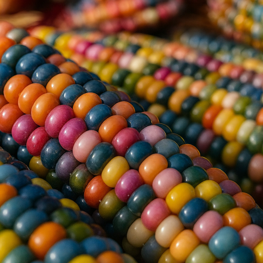 Особенности: HEIRLOOM FLINT CORN, OPEN-POLLINATED, NON-GMO, JEWEL-TONE KERNELS, RAINBOW COLOR EARS, POPCORN OR CORNMEAL, HOMINY/NIXTAMAL, 110-120 DAYS, 6-10 FT PLANTS, 3-8 IN EARS, DRIES FOR DECOR, HOLDS COLOR WHEN DRY, PLANT IN BLOCKS, WIND-POLLINATED, FULL SUN, WELL-DRAINED LOAM, WATER 1 IN/WEEK, FEED DURING GROWTH, SAVE SEEDS YEARLY, Open-Pollinating