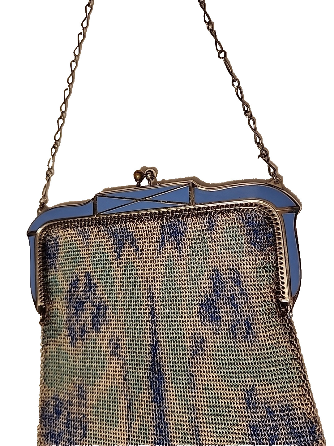 Antique Art Deco Whiting Davis Light Blue Enamel Mesh Purse 1920's Green RARE