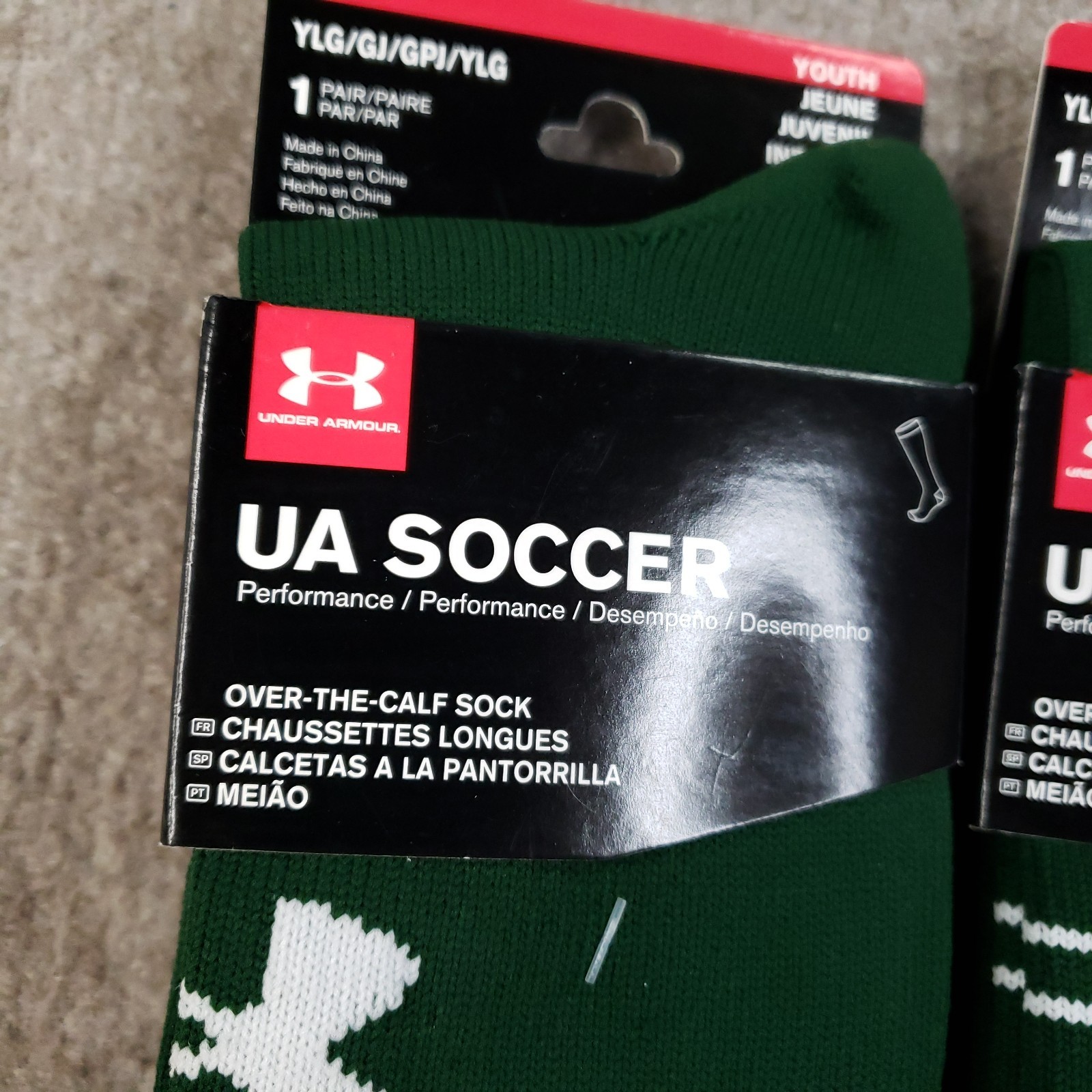 как выглядит Lot of 2 Pairs Under Armour Soccer Socks Youth Large Green Over Calf Performance фото