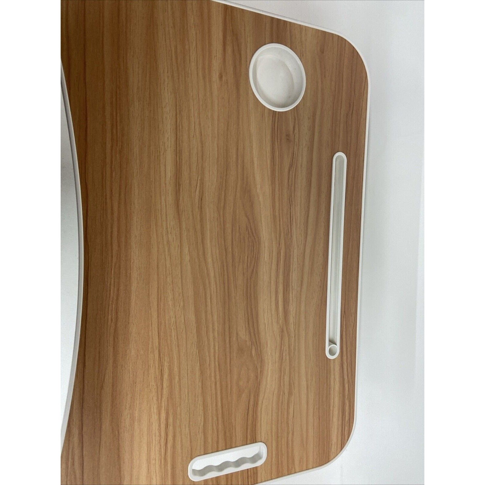 Portable Folding Lap Desk W/ Tablet Cup Holder White Faux Walnut TBL-08956 New