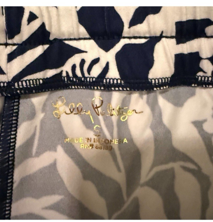 как выглядит Lilly Pulitzer Lillabeth Low Tide Navy Flocking To Paradise Jogger Pants S NWT фото