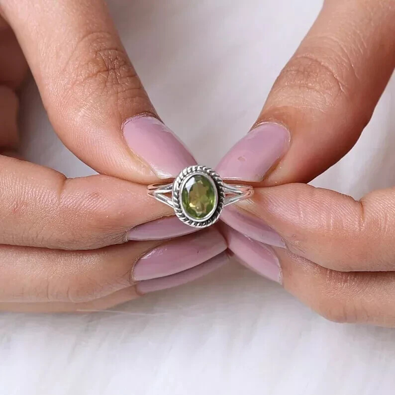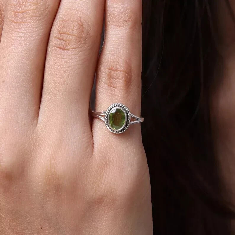 как выглядит Peridot Solid 925 Sterling Silver Band Statement Ring Handmade Ring K-53 фото