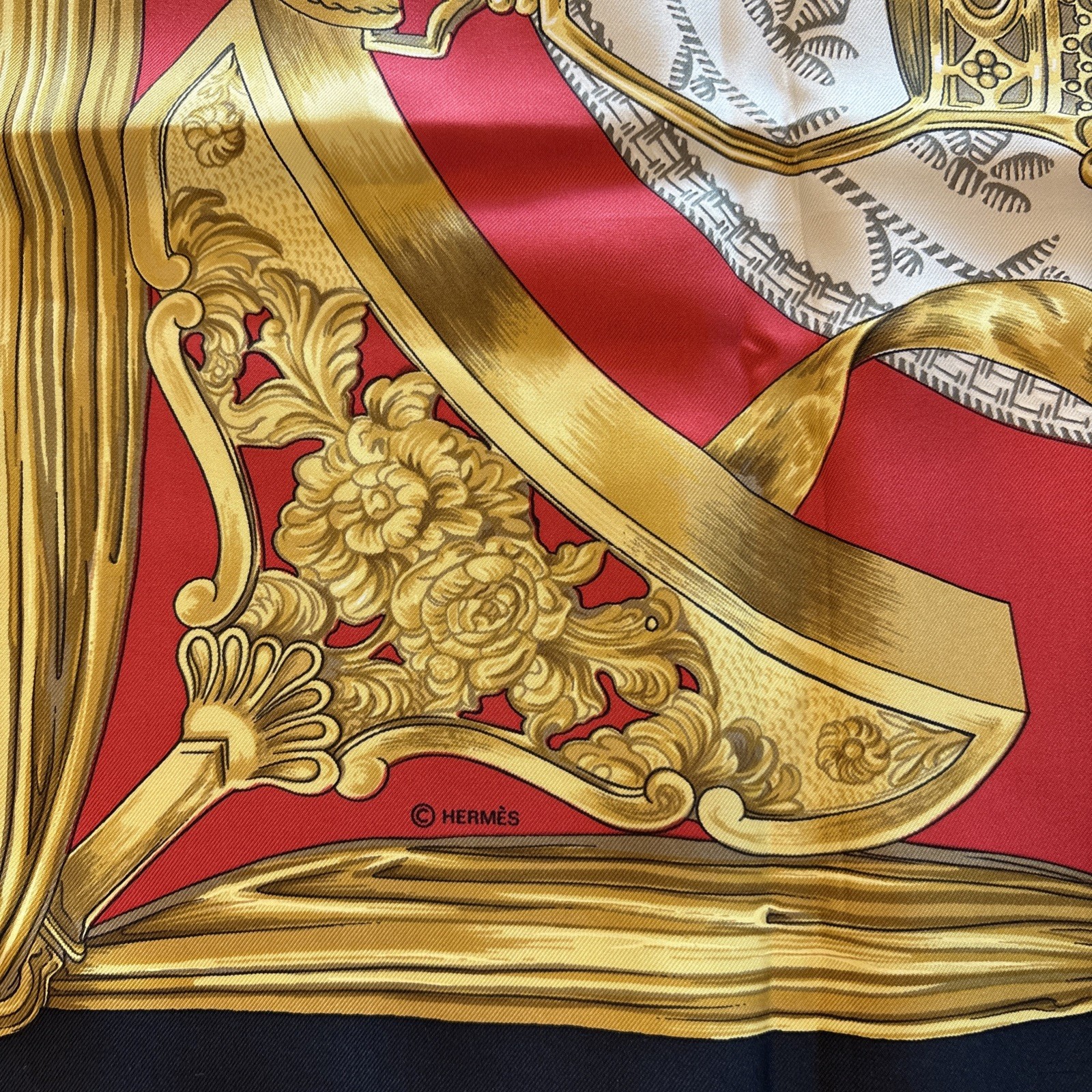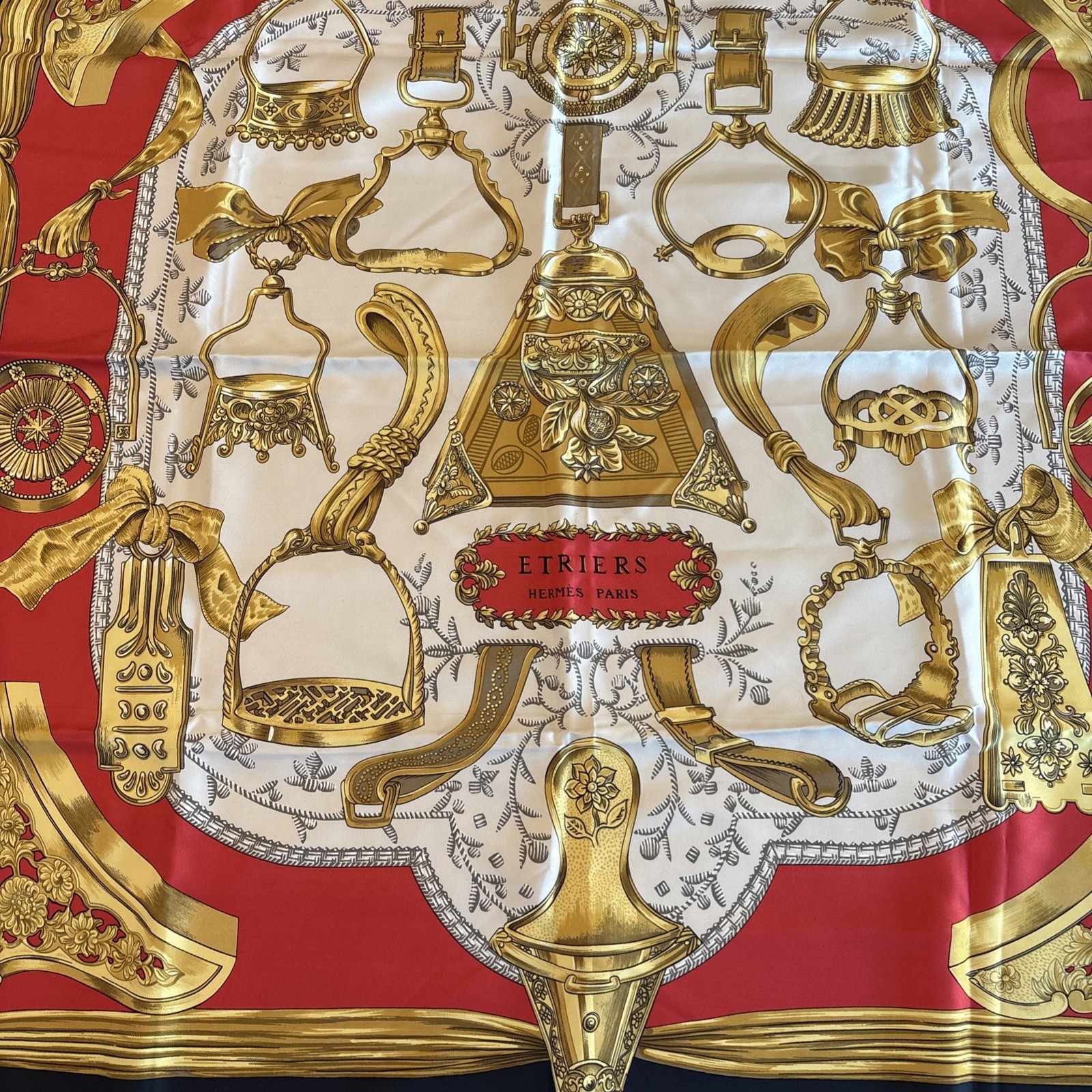 HERMES Etriers Black Red Silk Scarf 90 Cm