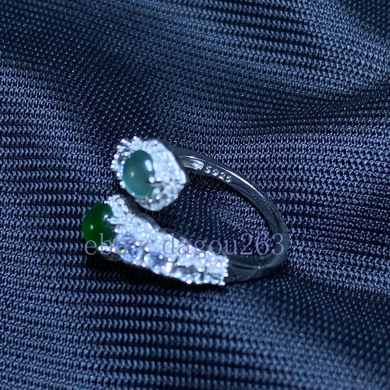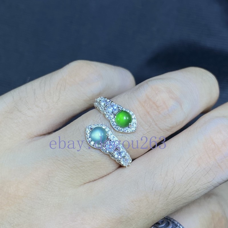 как выглядит Certified natural A-grade jadeite green-blue Two Egg 925 silver inlaid ring фото