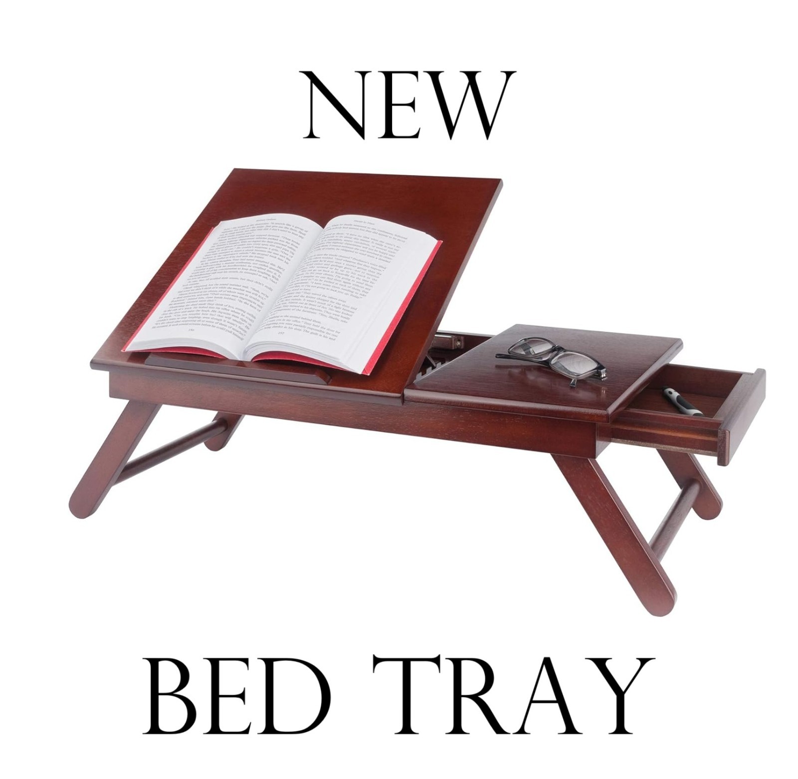 NEW Walnut Winsome Alden Bed Laptop Tray Lap Desk Reading Workstation W/ Drawer
