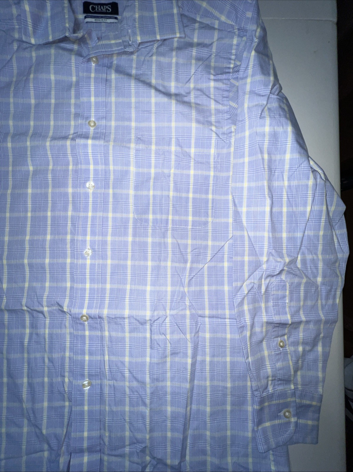 как выглядит Chaps shirt men s button up 15 32/33 Regular Fit stretch collar, wrinkle free фото