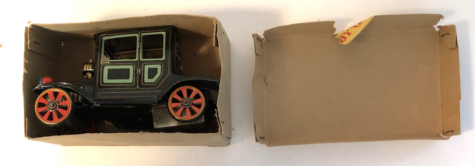 Pet of By-Gone Days 1917 Ford Model T Tin Friction Toy Car w/ Box Japan 1427 Vtg