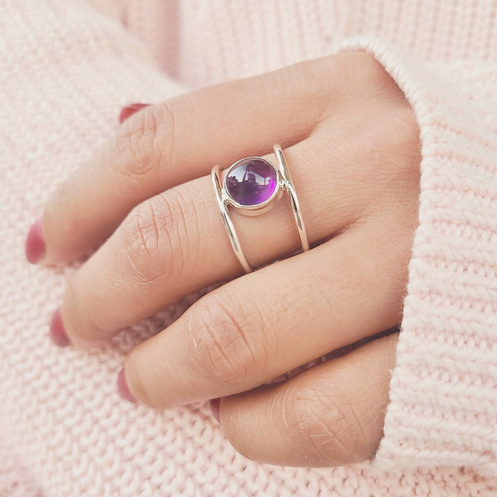 как выглядит Genuine Amethyst 925 Sterling Silver Purple Round Ring Hand Made Ships From USA фото