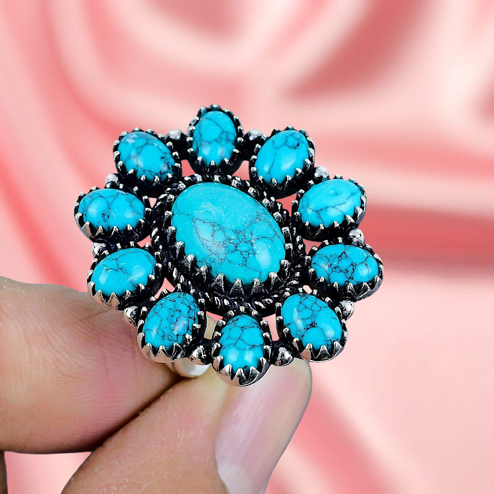 как выглядит Turquoise Gemstone Ring Silver Ring 925 Sterling Silver Ring Women