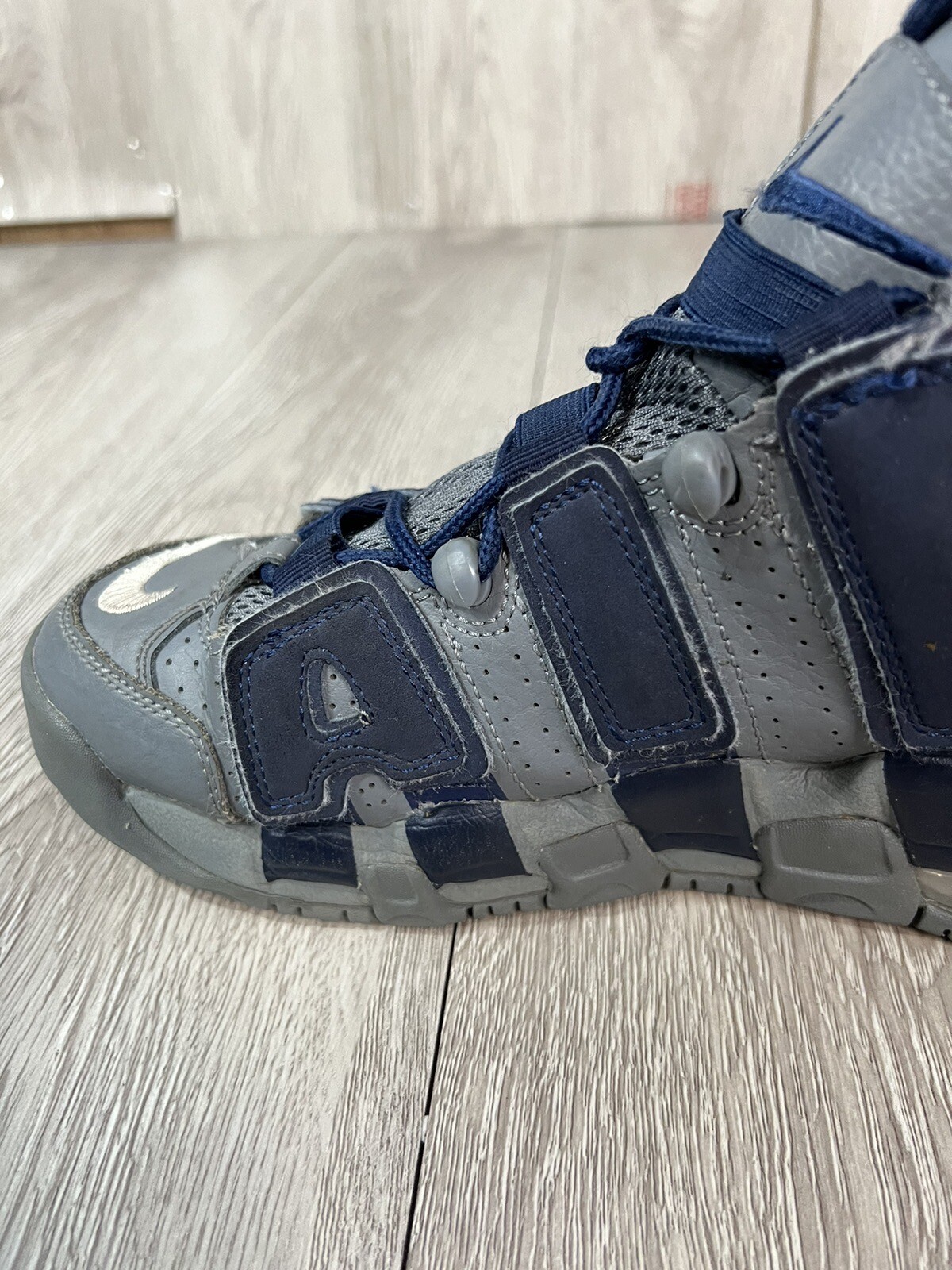 как выглядит Nike Air More Uptempo GS 415082-009 Cool Grey Midnight Navy Size Youth 6.5Y фото