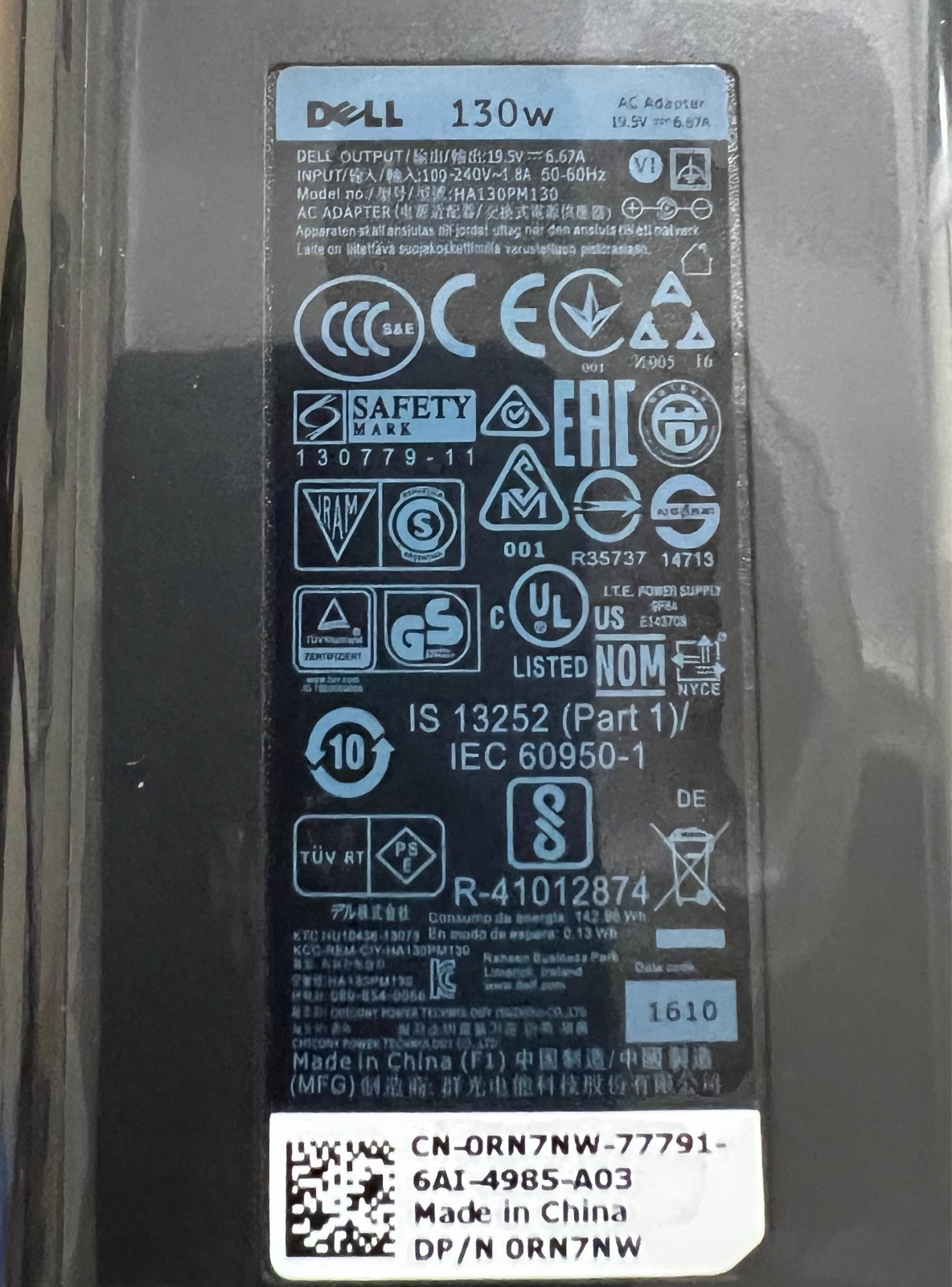 NEW Dell 130W 4.5mm AC Adapter For XPS 15 7590 9530 Inspiron 7348 Precision 5510