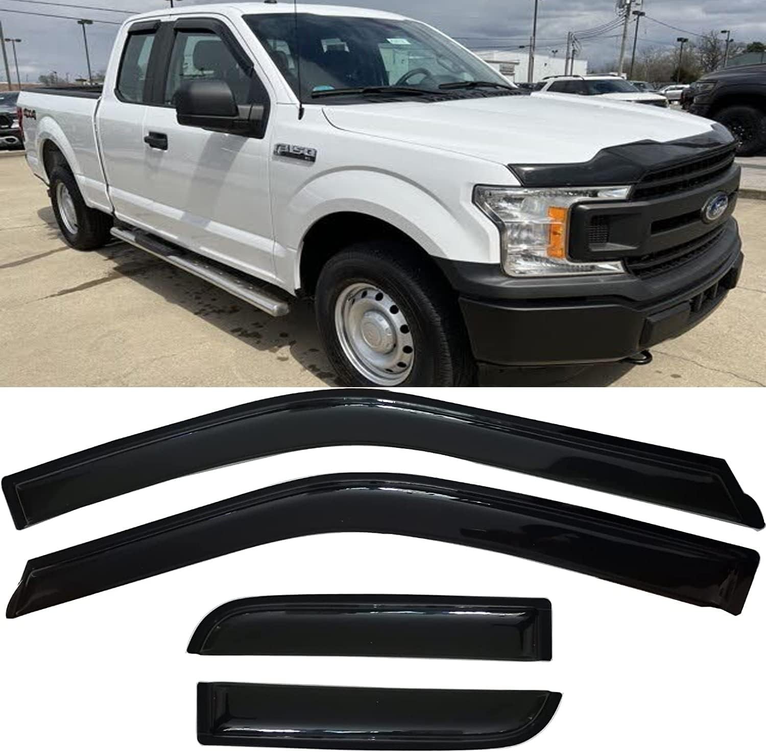 Tape-on Side Car Window Rain Guards Vent Sun Visors For 2015 F150 Extended Cab