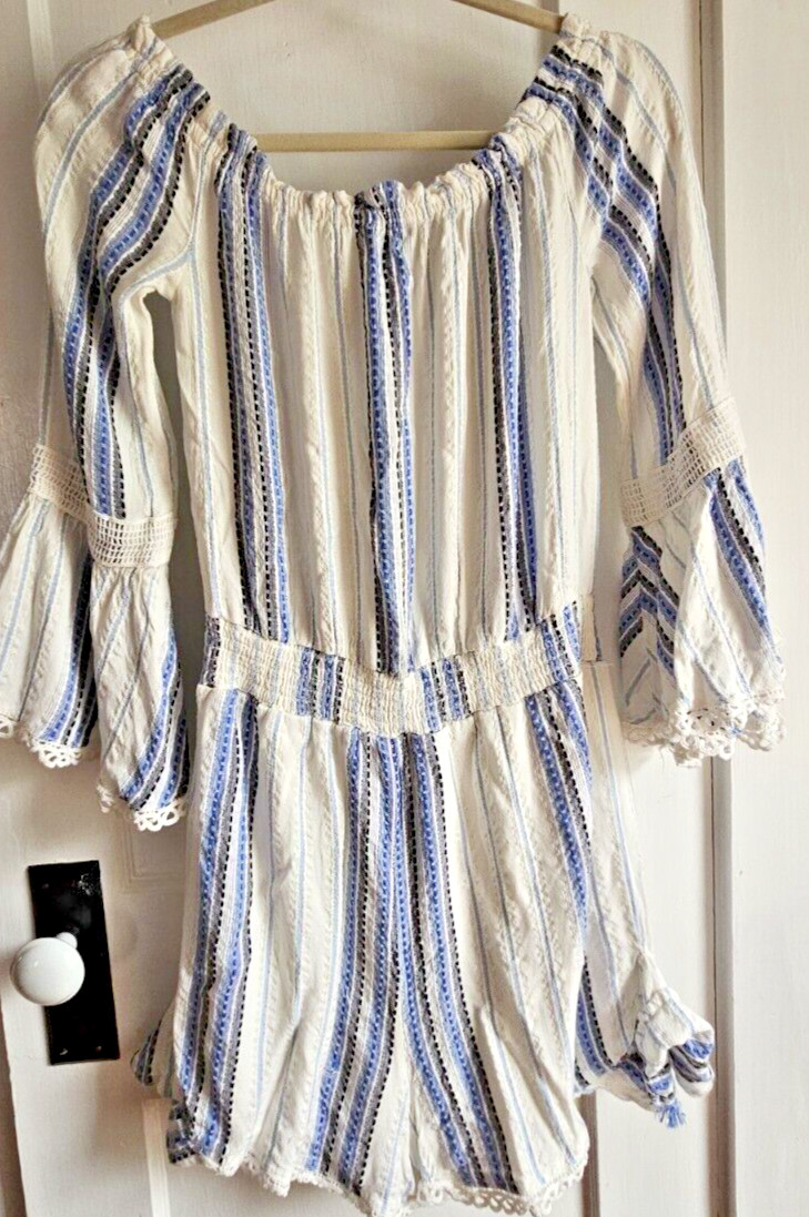 как выглядит VERSONA blue white black metallic bell sleeves romper women Sz Medium фото