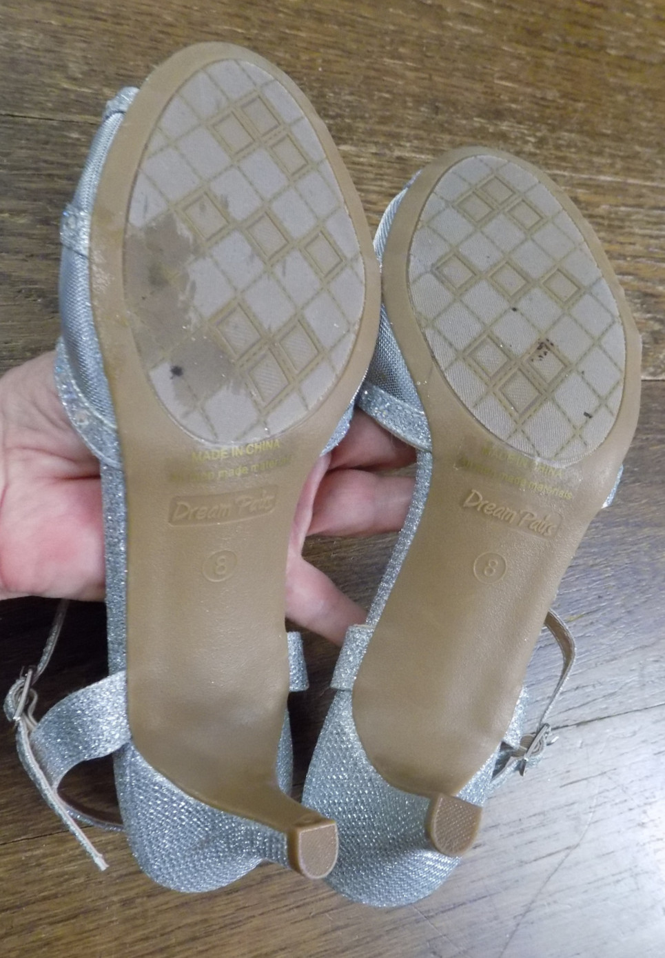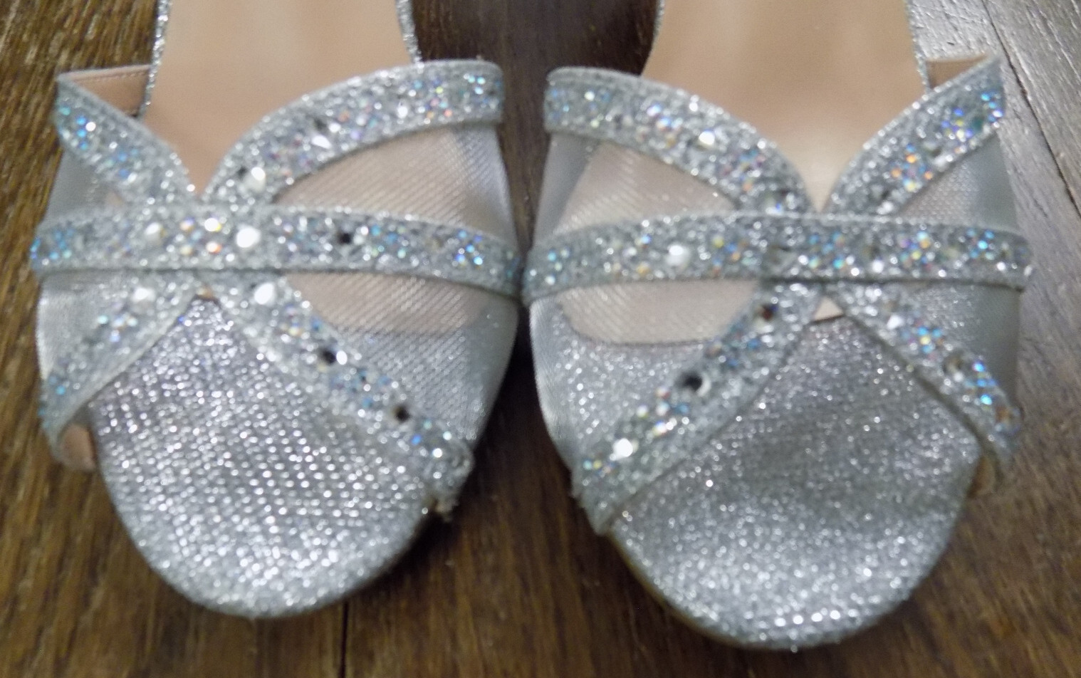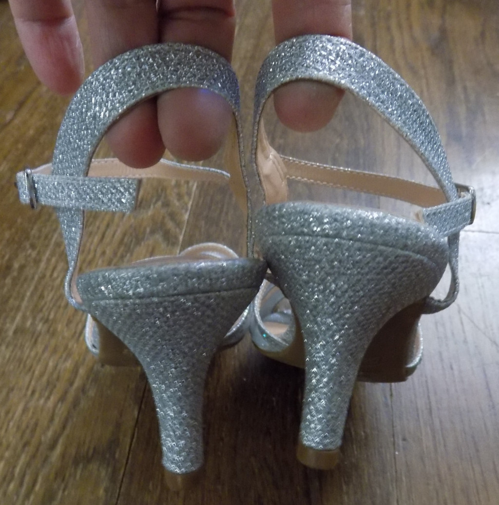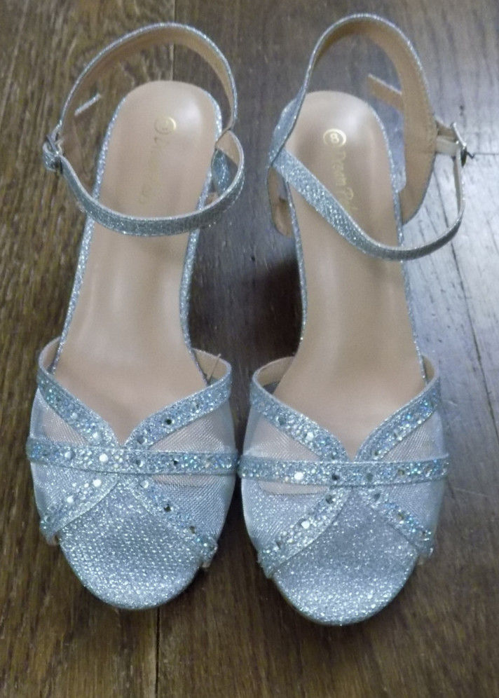 как выглядит Dream Pairs Silver Sparkle Mesh Rhinestones Dressy Sandals 2.5" Heels Size 8 EUC фото