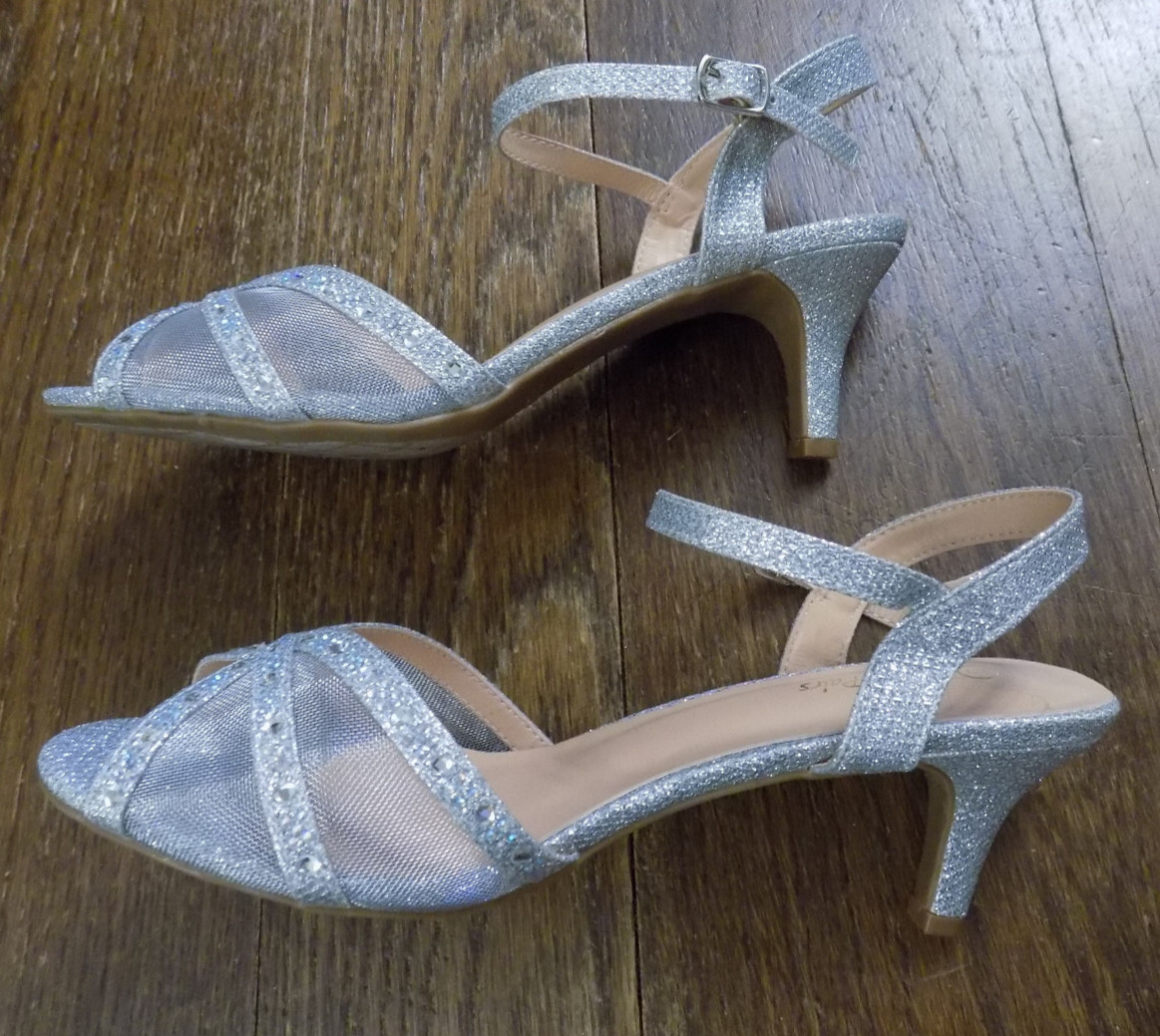 Dream Pairs Silver Sparkle Mesh Rhinestones Dressy Sandals 2.5 Heels Size 8 EUC