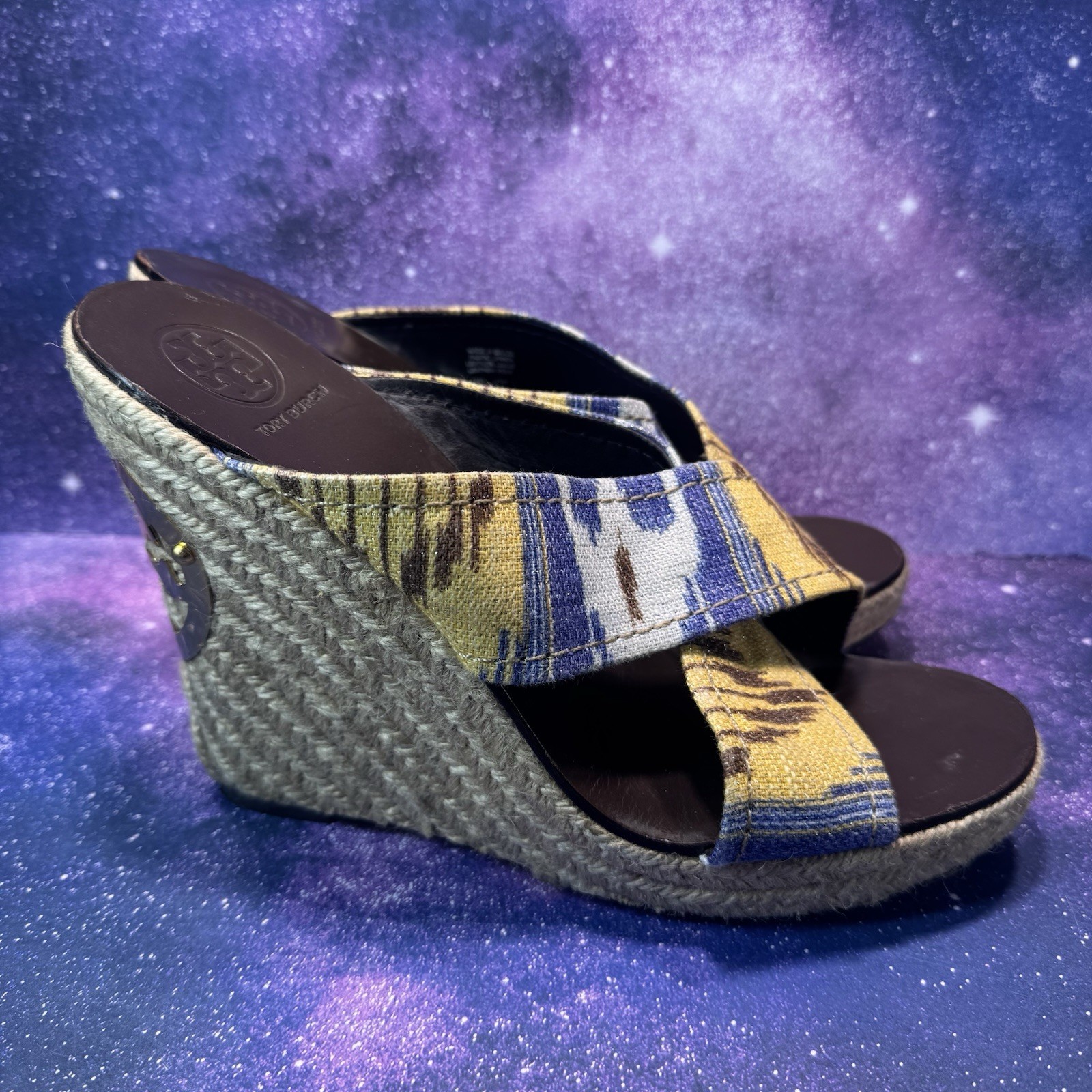 Slightly Used Tory Burch Bailey Wedges Mules Espadrilles Sandals Black Size 8