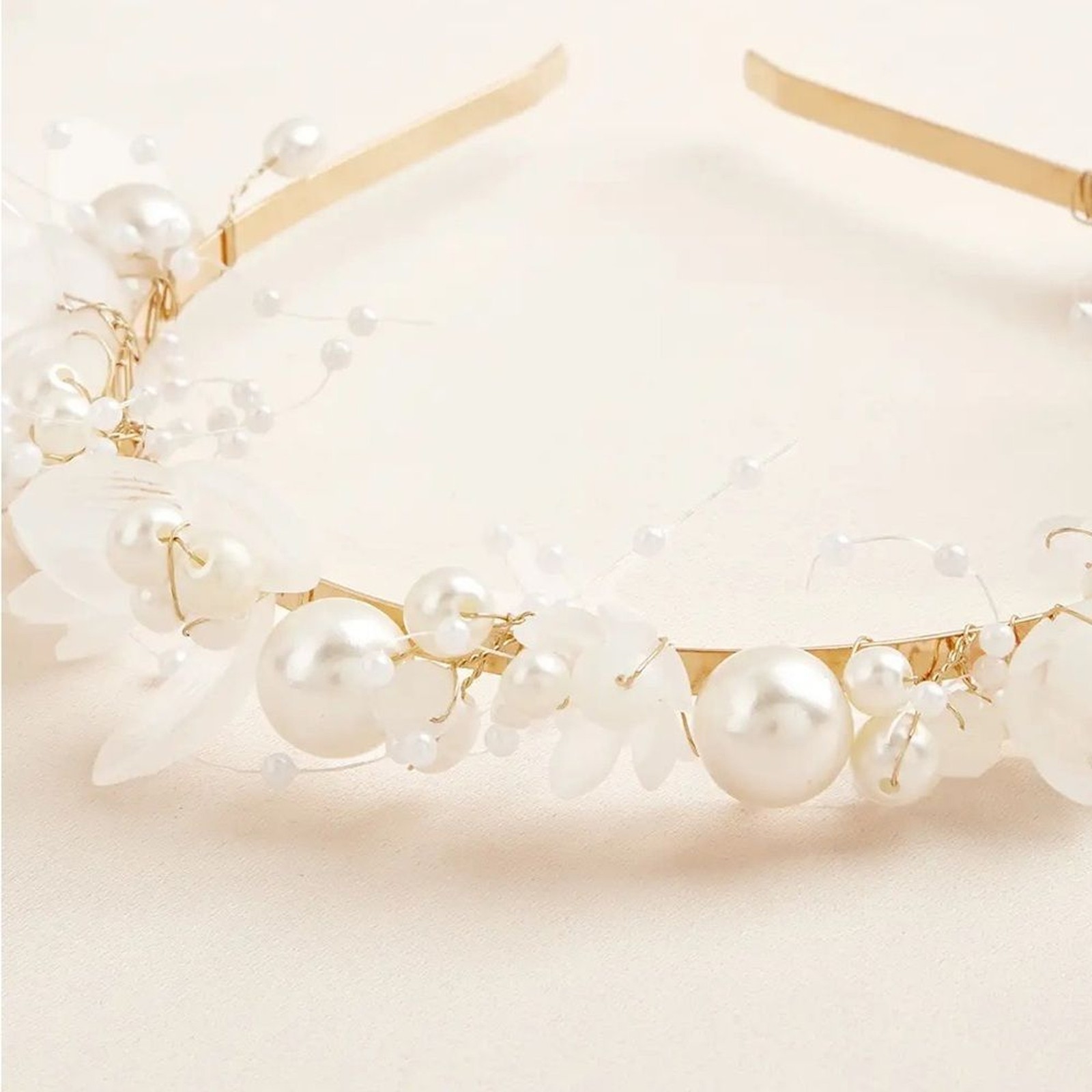 Azazie Elegant Gold and White Pearl Hairpiece NEW