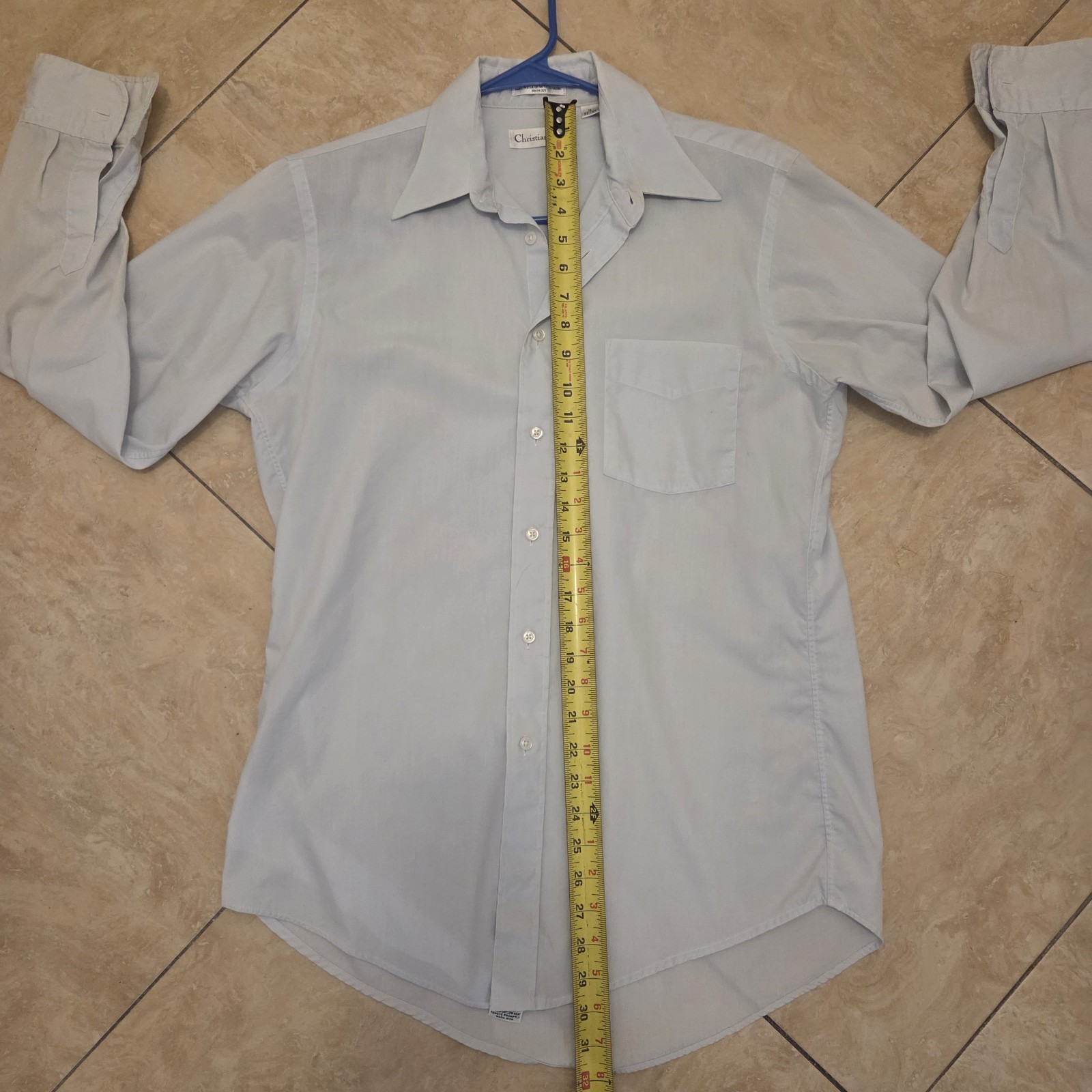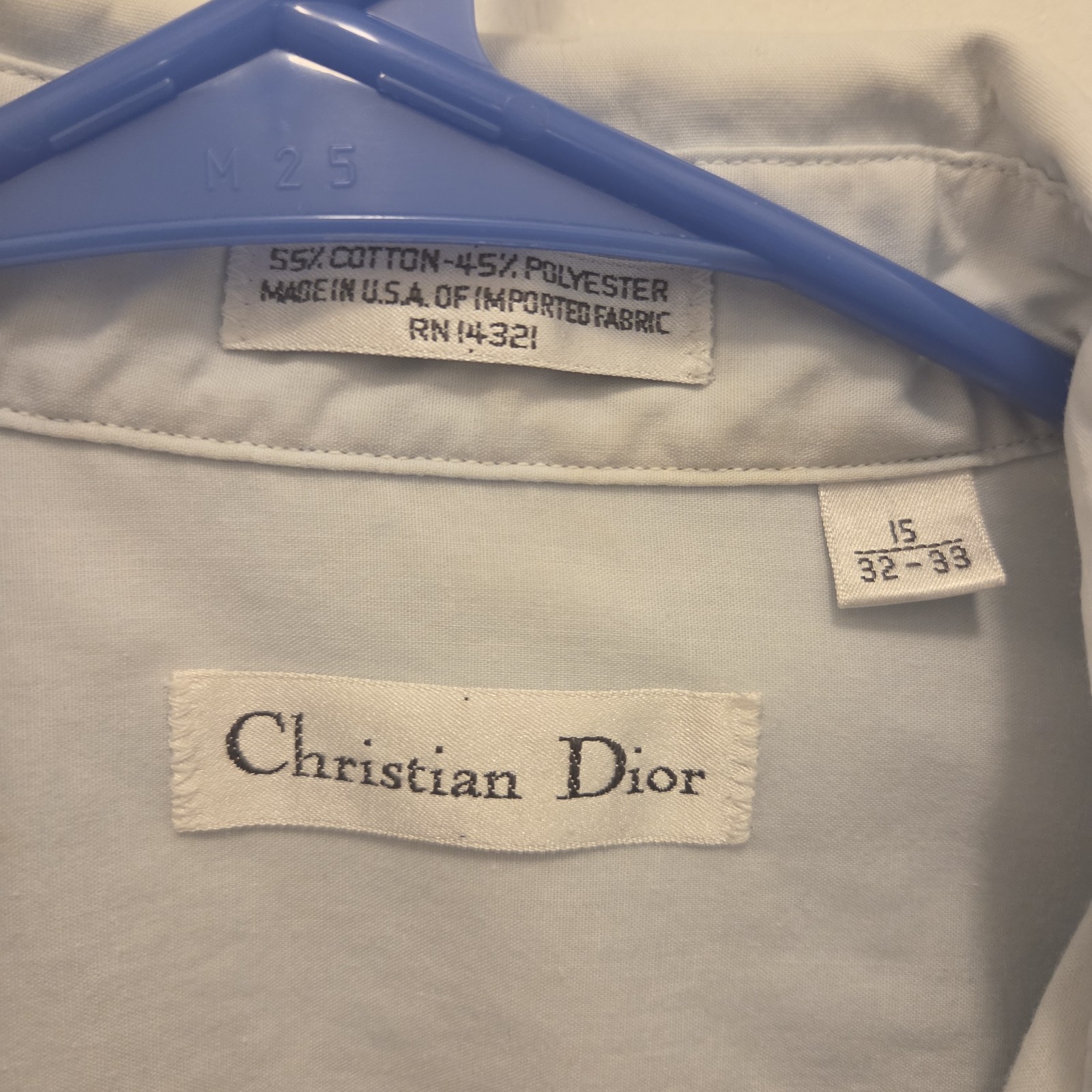 как выглядит CHRISTIAN DIOR mens 15 32-33 size dress shirt light blue long sleeve 55 cotton фото