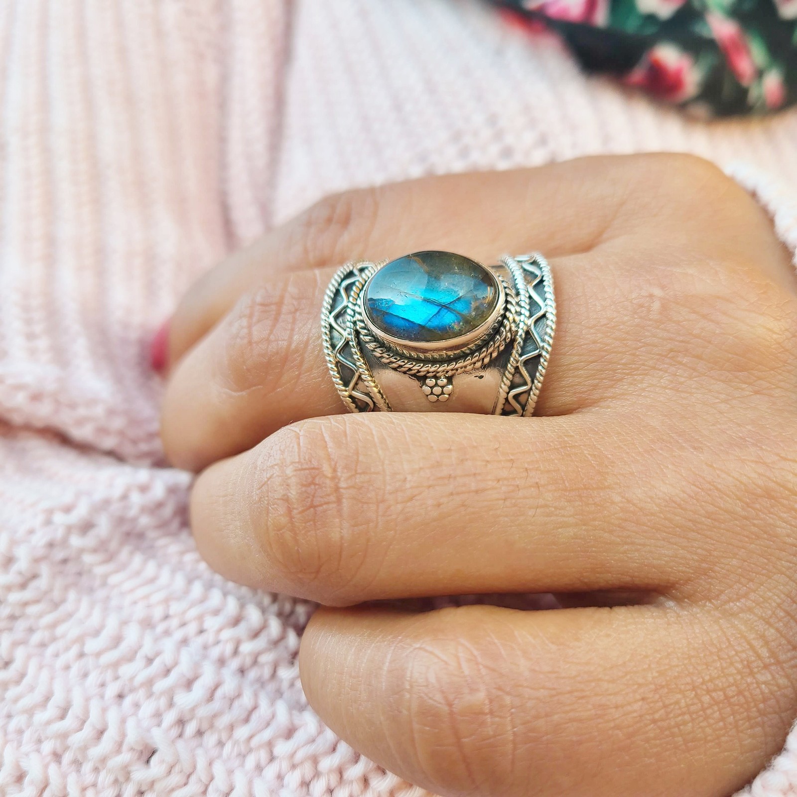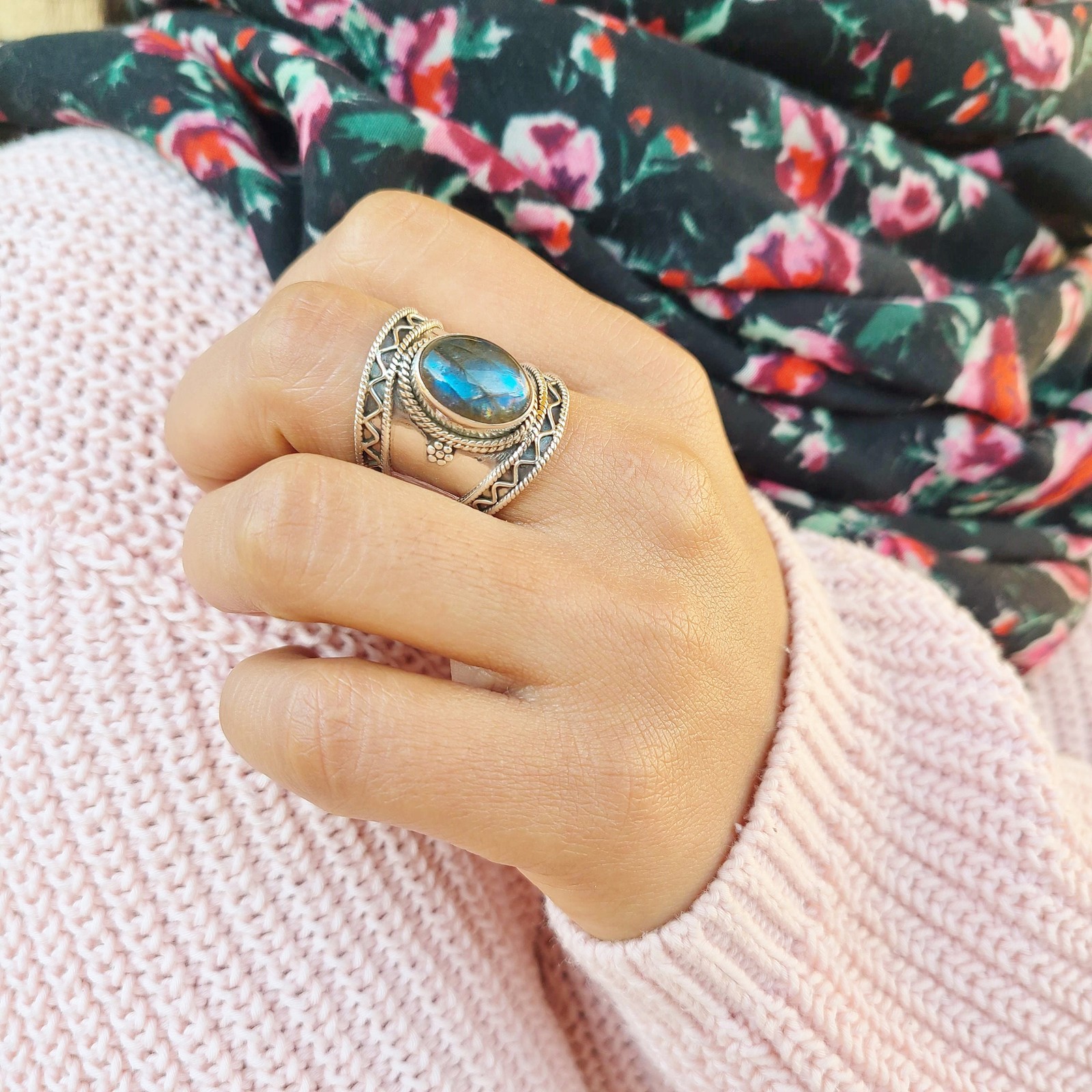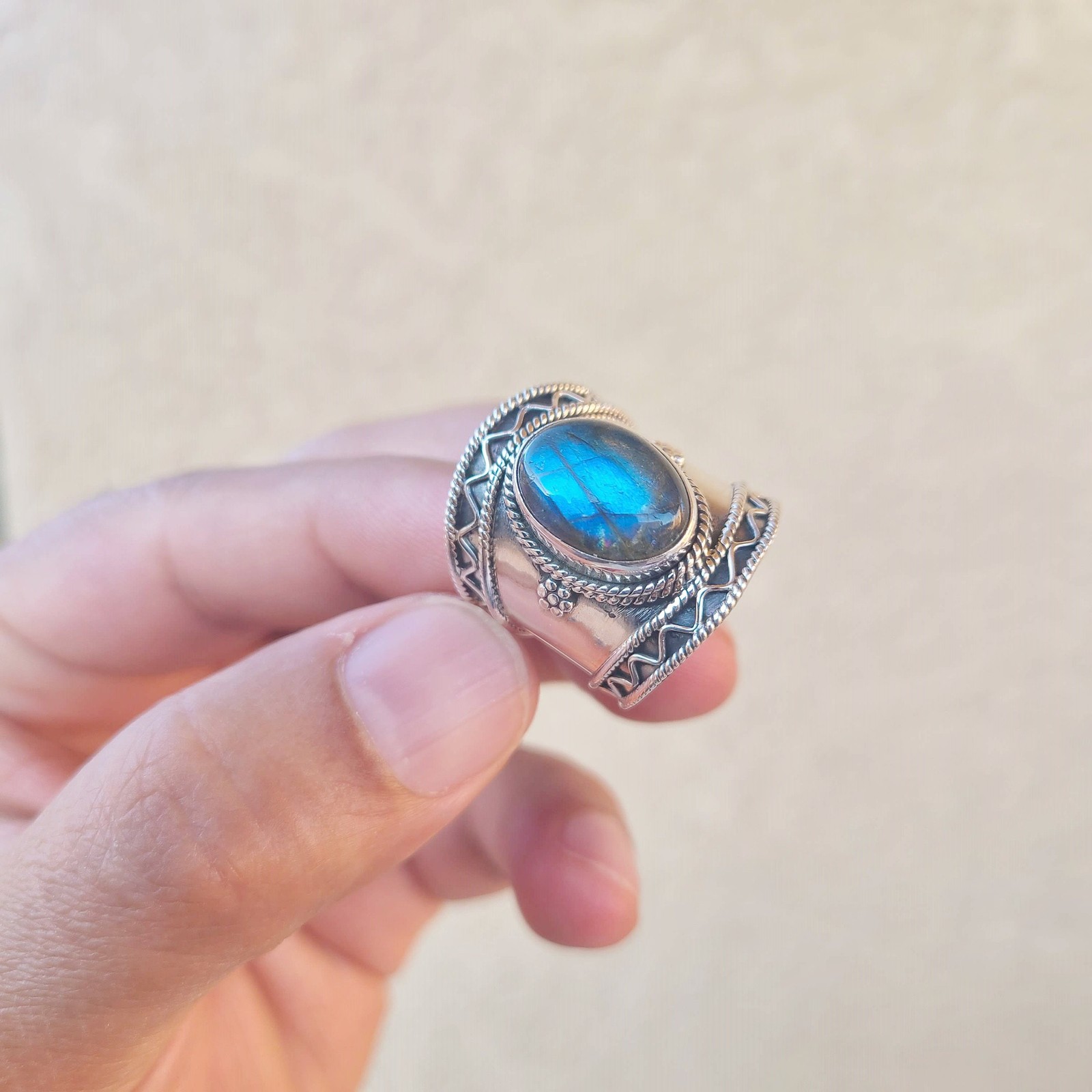 как выглядит Genuine Labradorite Ring 925 Sterling Silver Oval Gemstone Handmade Boho Jewelry фото