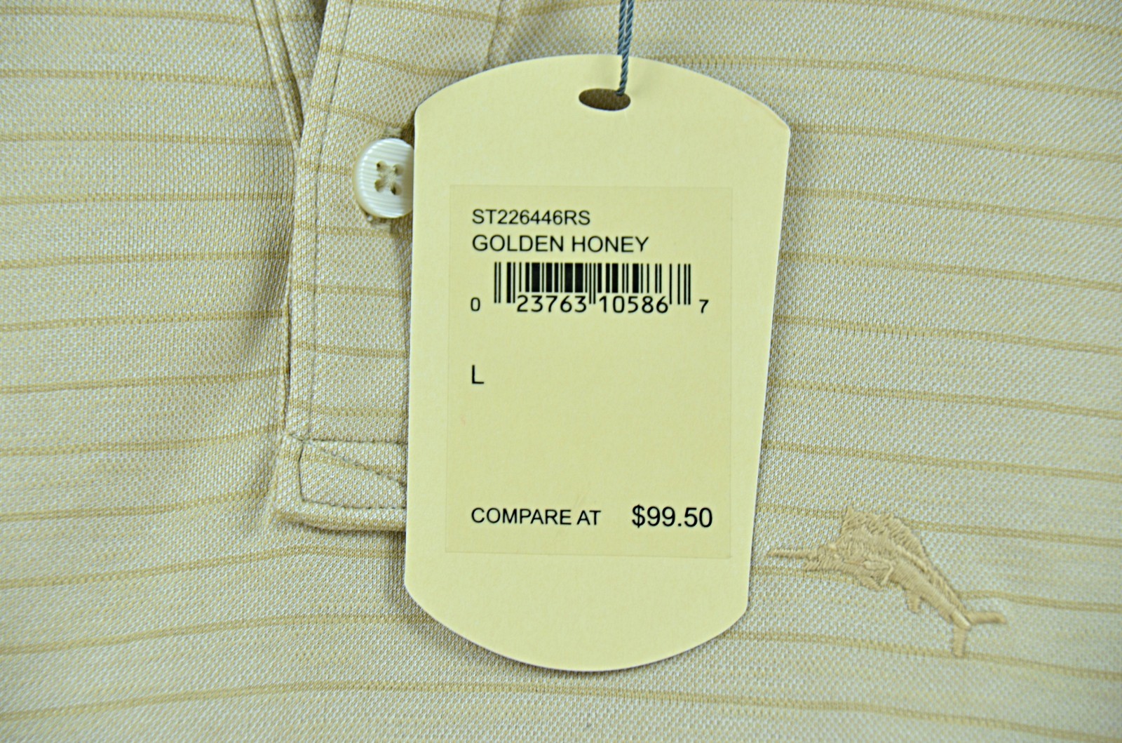 как выглядит Tommy Bahama Polo Shirt Mens Size L Striped Short Sleeve Golden Honey NWT фото