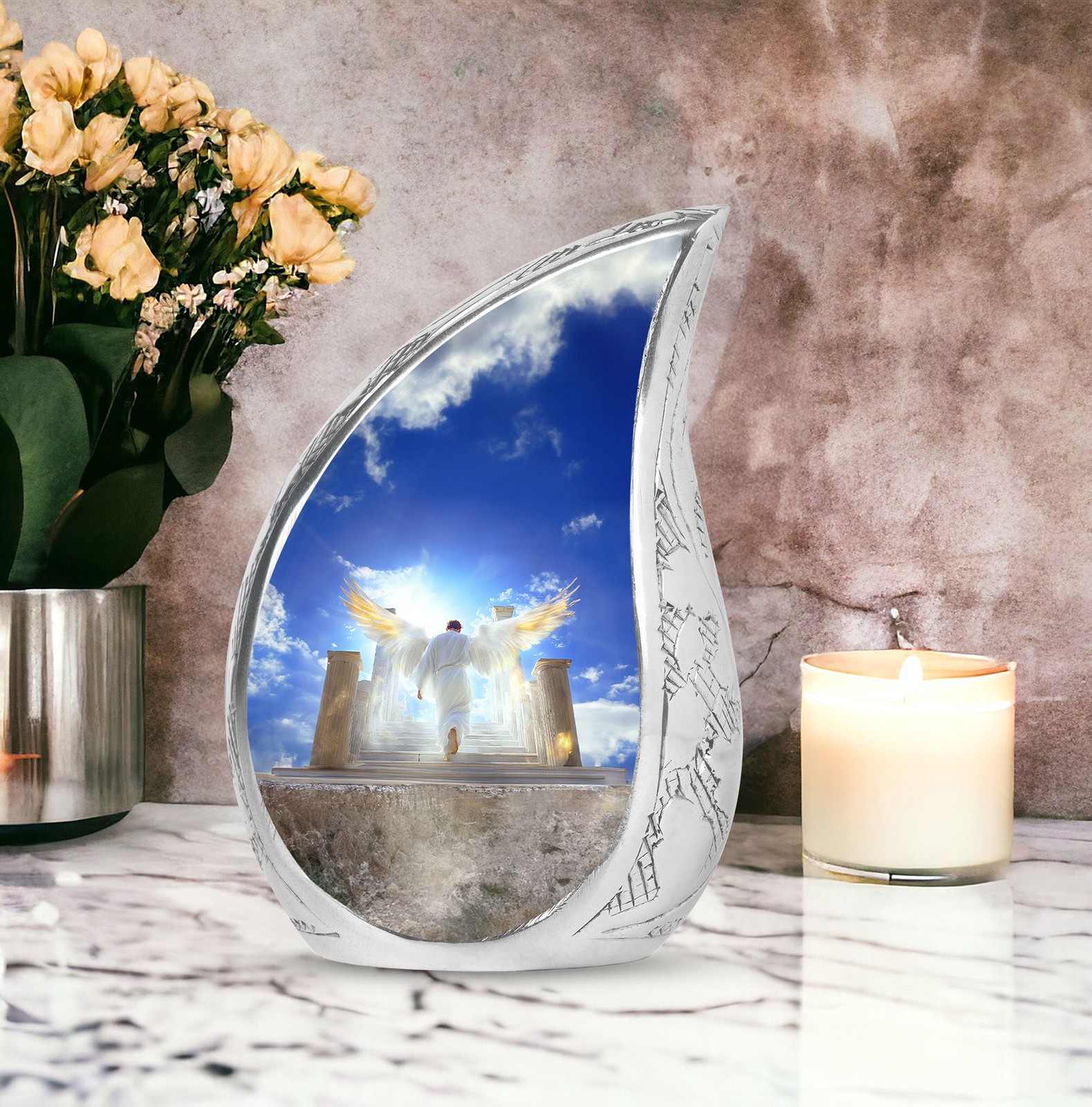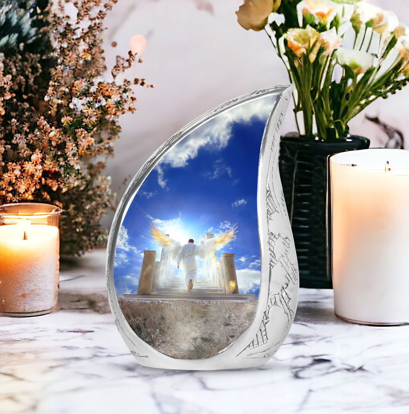 как выглядит White Angel Wings Burial Large Urn For Ashes Adult Mother 10 Inch фото